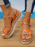 Summer Chic: Plus Size Platform Wedge Sandals with Butterfly Print and Linen Rope Sole