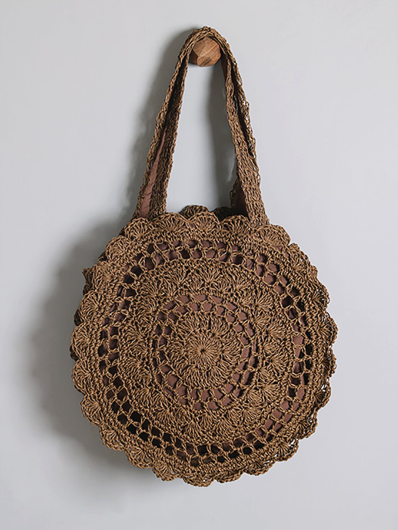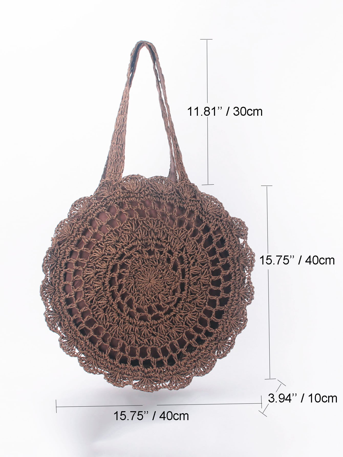 Bag. Made with high quality straw material and featuring a unique scallop trim, this bag effortlessly combines fashion and function. Perfect for carrying your beach essentials with a touch of elegance."
