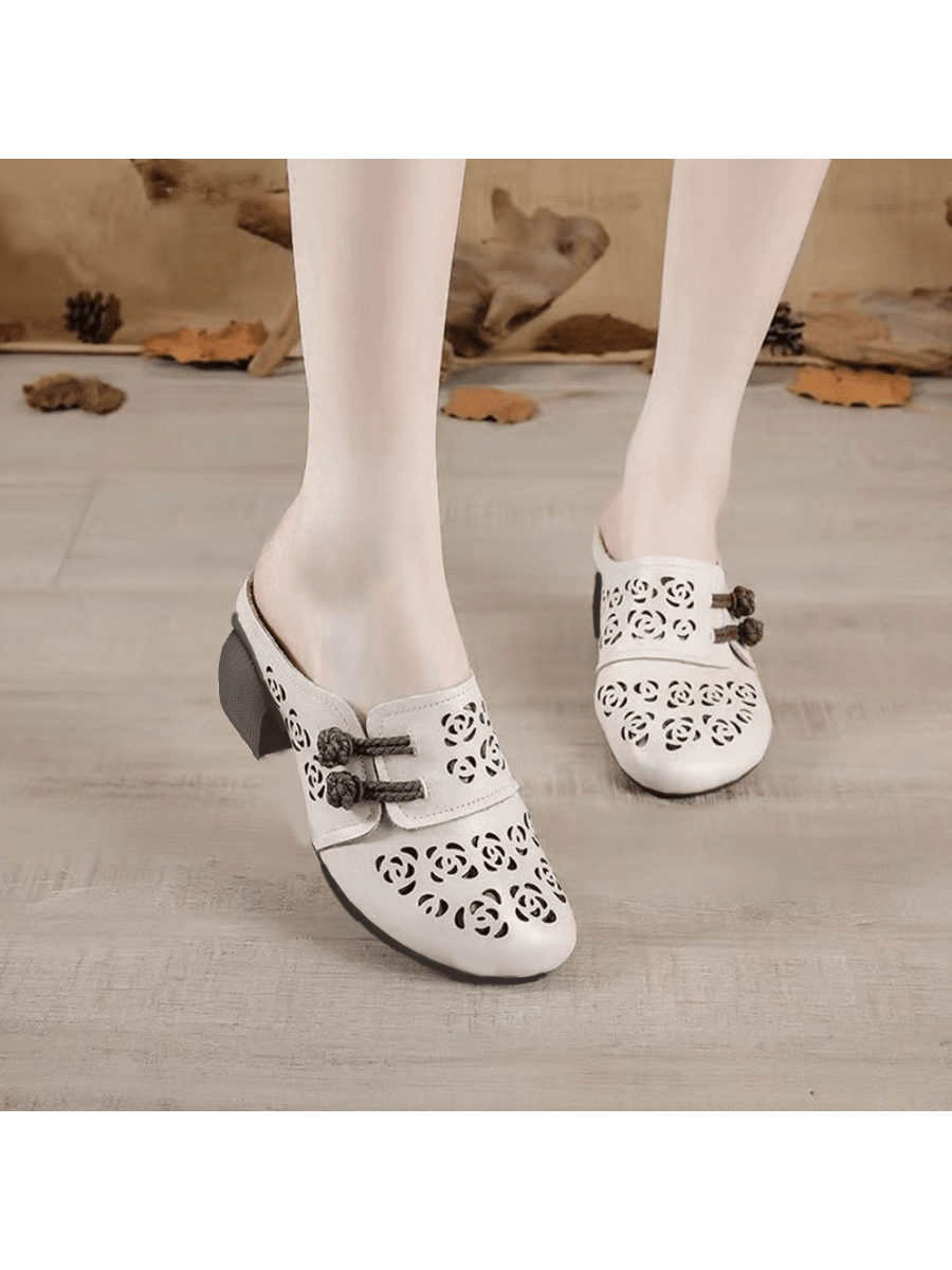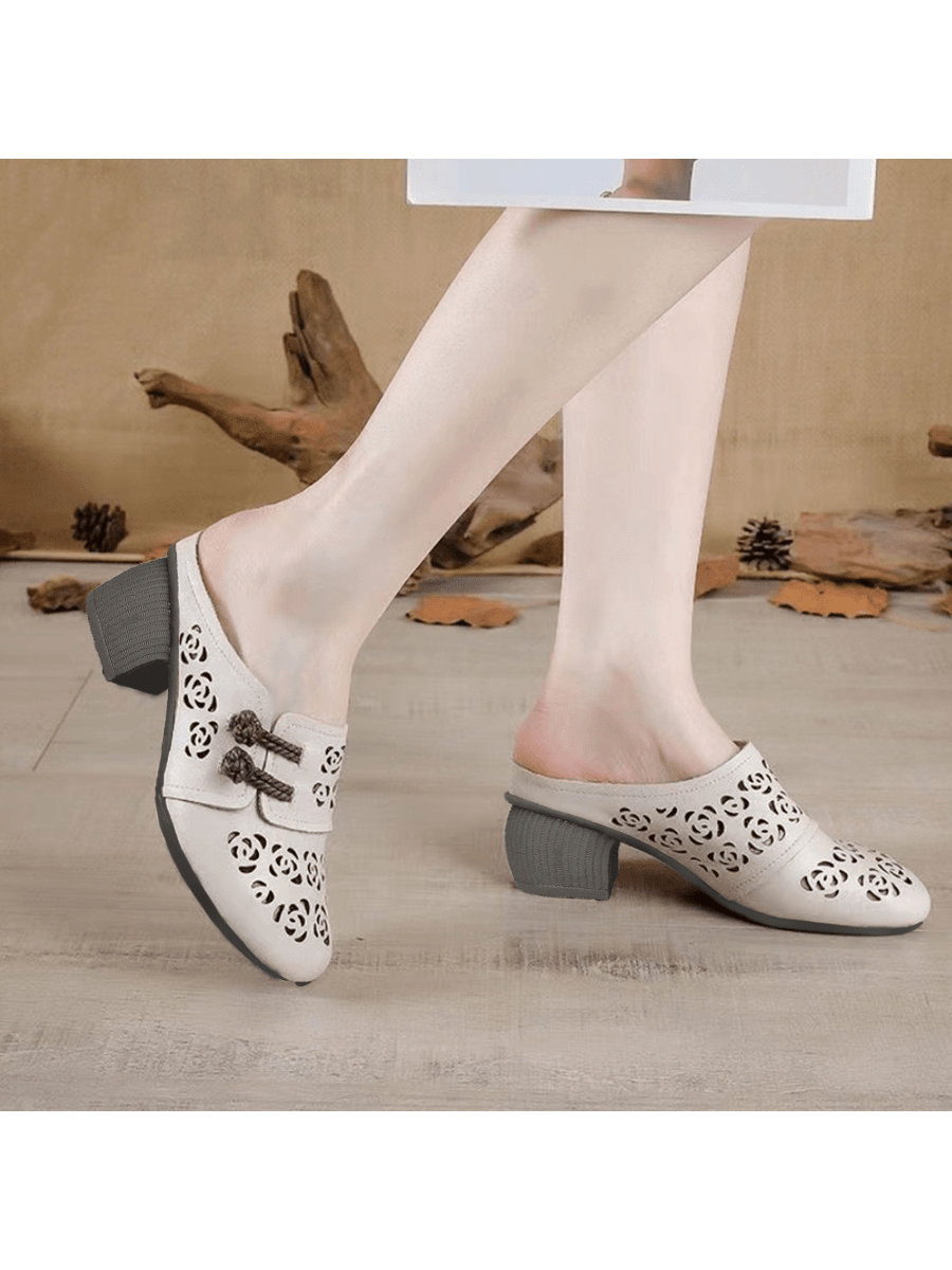 Summer Chic: White Mid-Heel Chunky Heel Sandals for Women