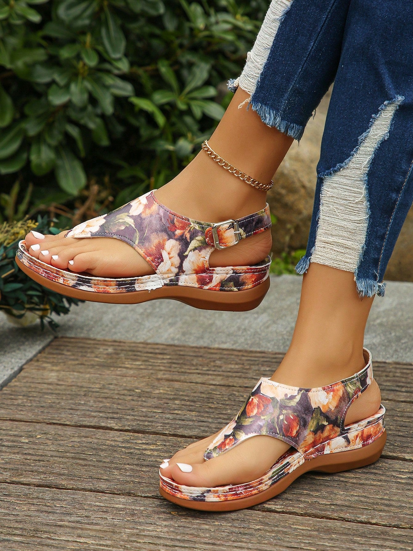 Summer Chic: Women's Floral Print Wedge Heel Peep Toe Sandals