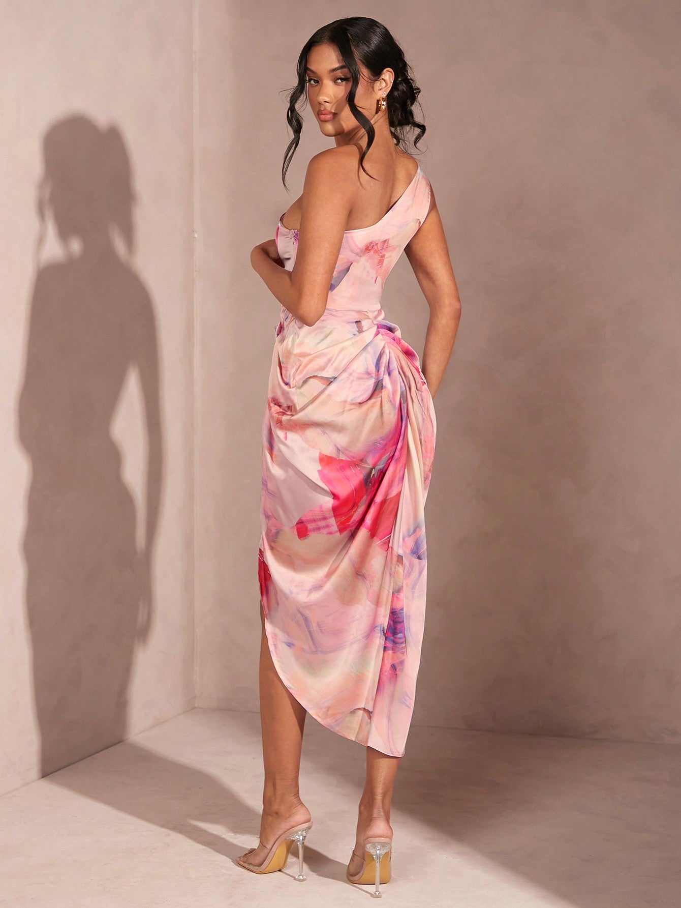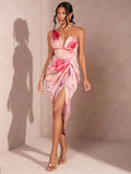 Summer Dream Tie-Dye One Shoulder Satin Dress