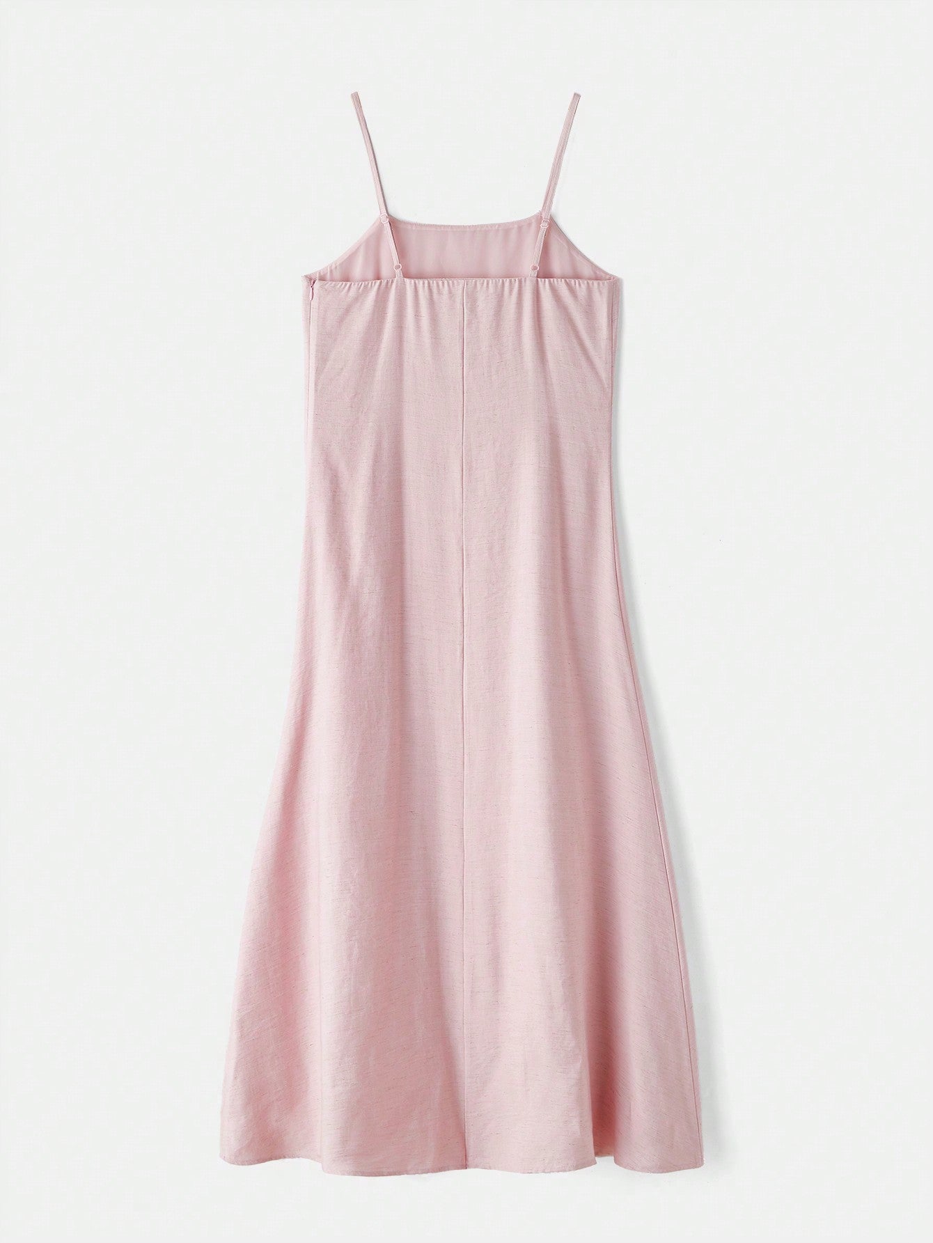 Stay stylish and comfortable during hot summer evenings with our Ontre Solid Casual Cami Long Dress. Made for effortless elegance, this dress is perfect for any occasion. With its lightweight and flowy design, you'll stay cool and chic all night long. Elevate your wardrobe with this must-have dress.