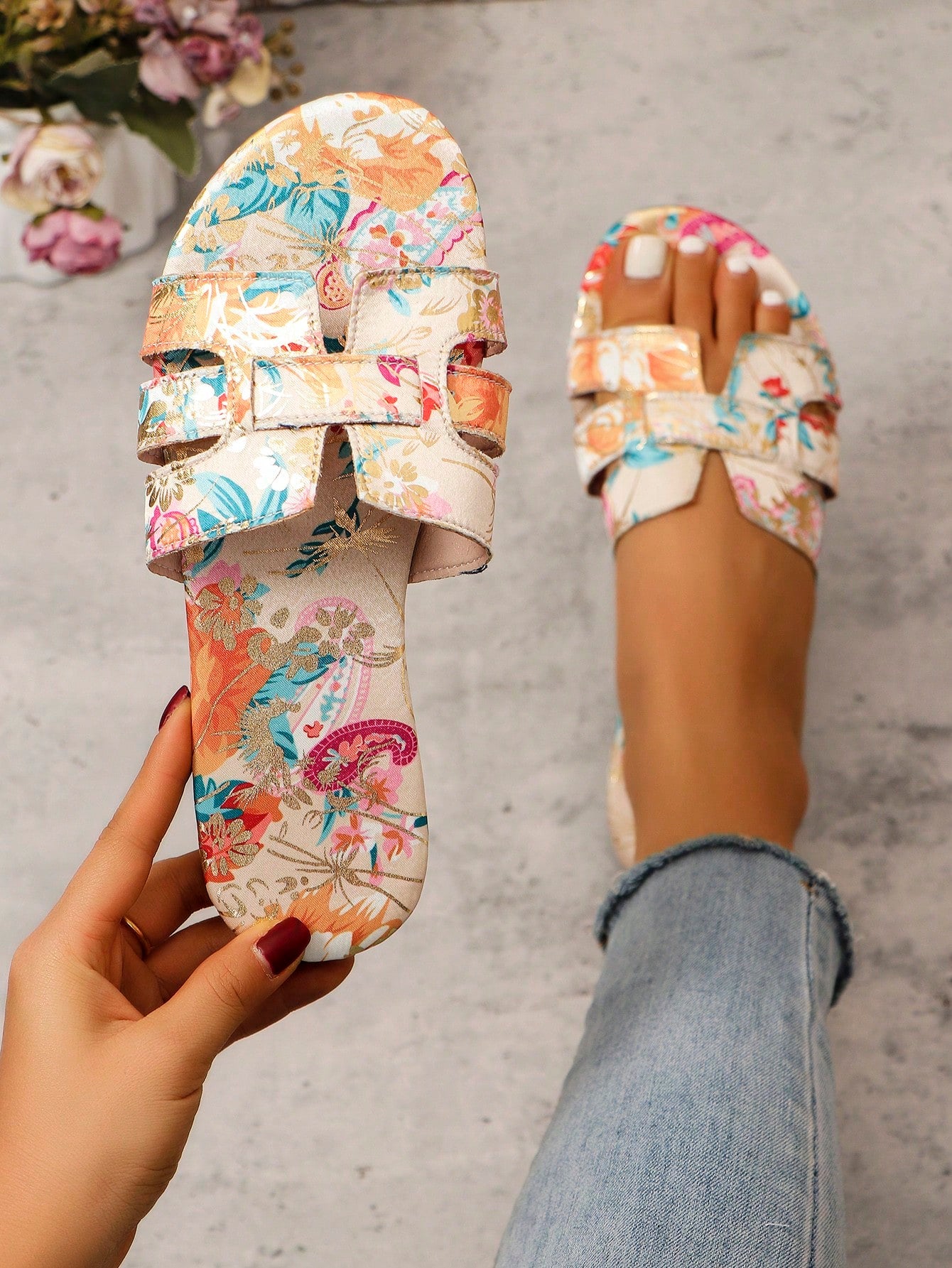 Summer Fun: Graphic Print Buckle Decor Slide Sandals for Fashionable Women