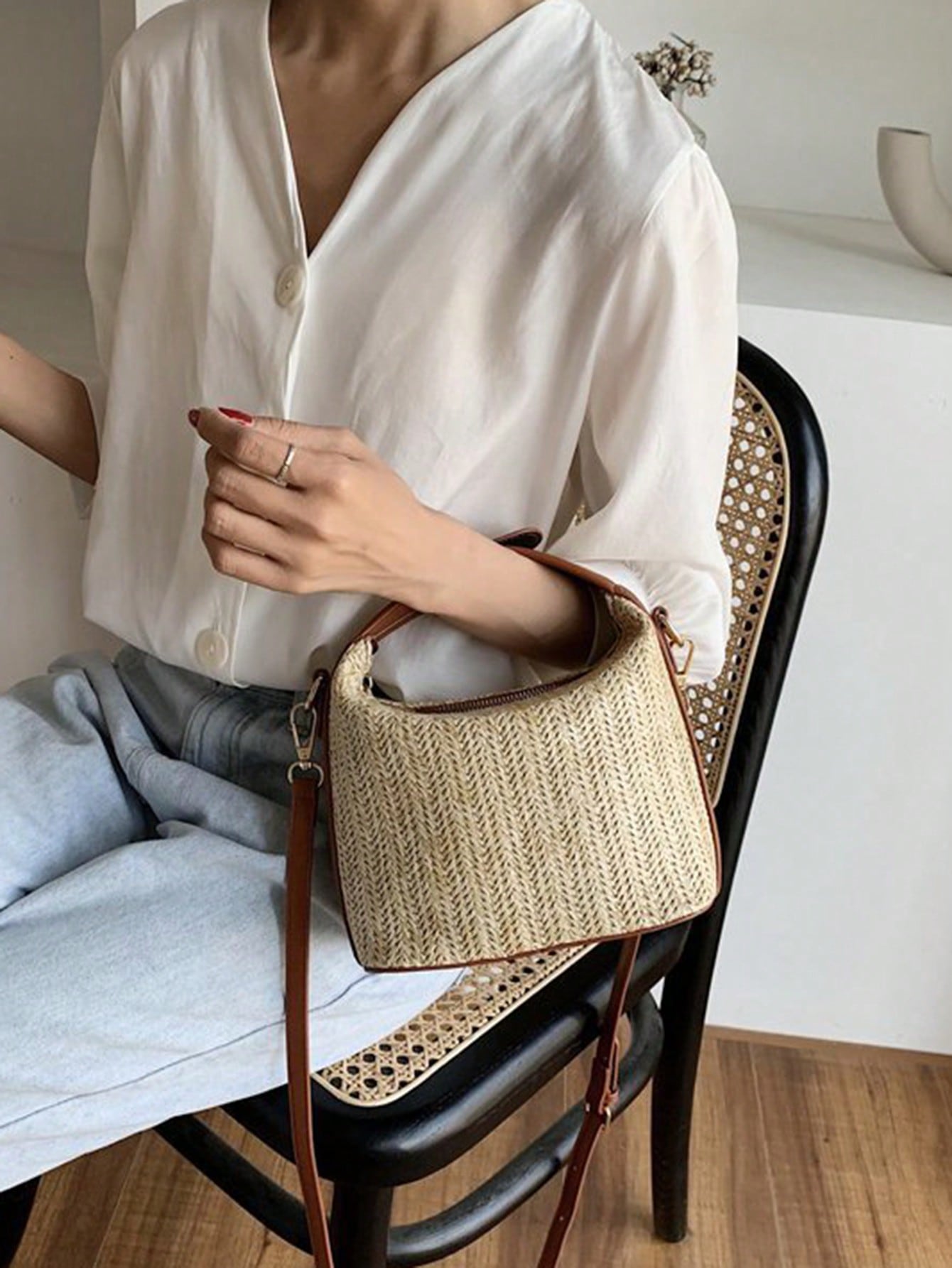 Summer Romance: Large Capacity Straw Beach Bag Crossbody Bag