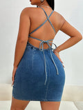 Summer Seduction: Women's Backless Cross Bodycon Denim Dress