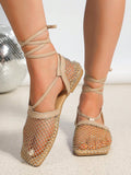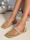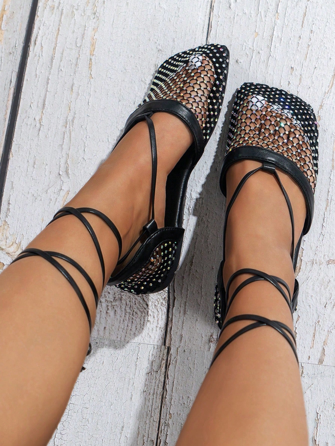 Summer Square Toe Fishnet Sandals: Colorful Crystal Hollow Mesh Slip-On Shoes