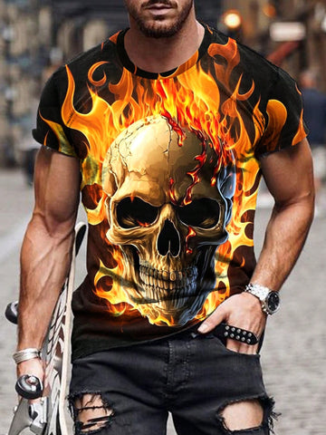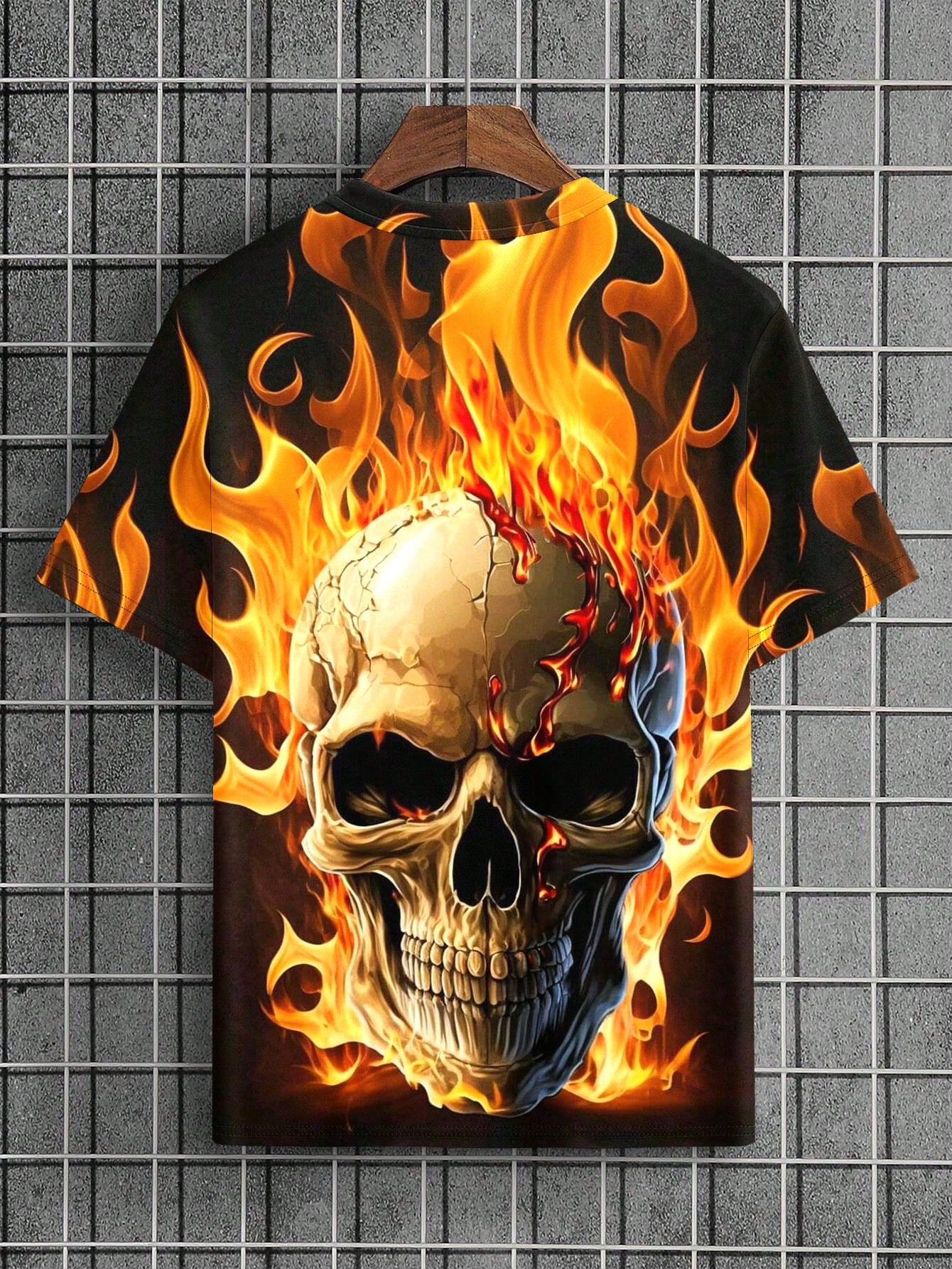 Summer Style: Men's Skull Flame Printed Casual T-Shirt
