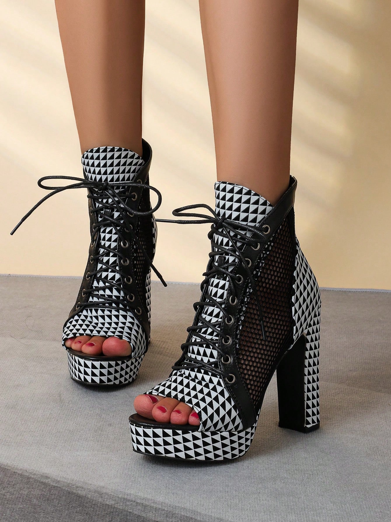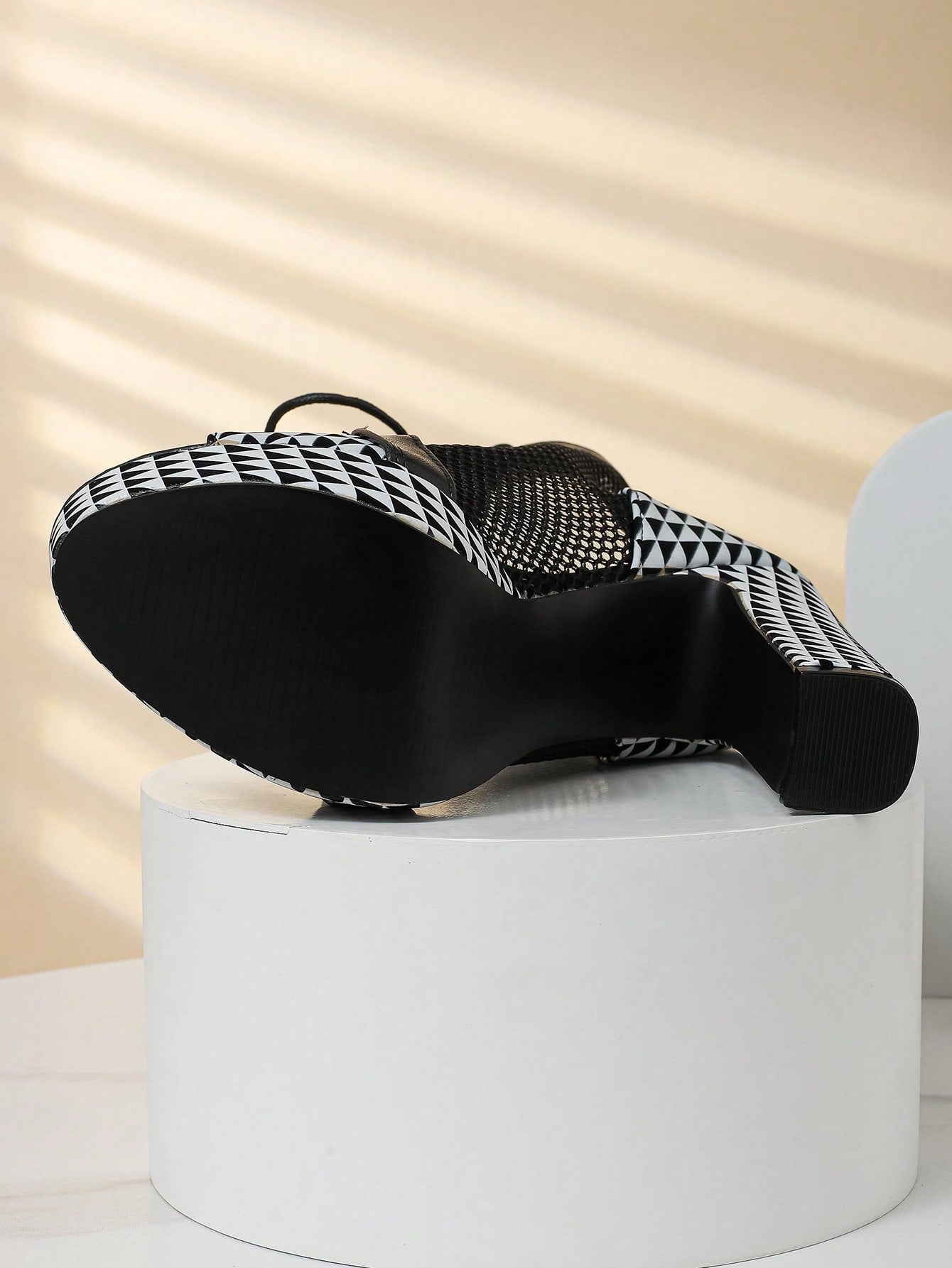 Summer Style Statements: Triangle Pattern Peep Toe Chunky Heeled Sandals