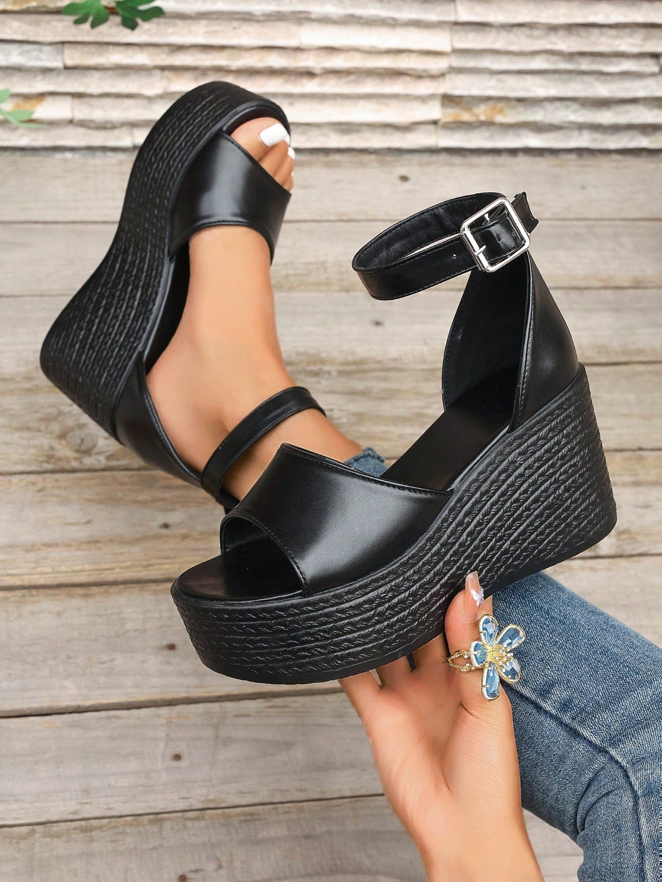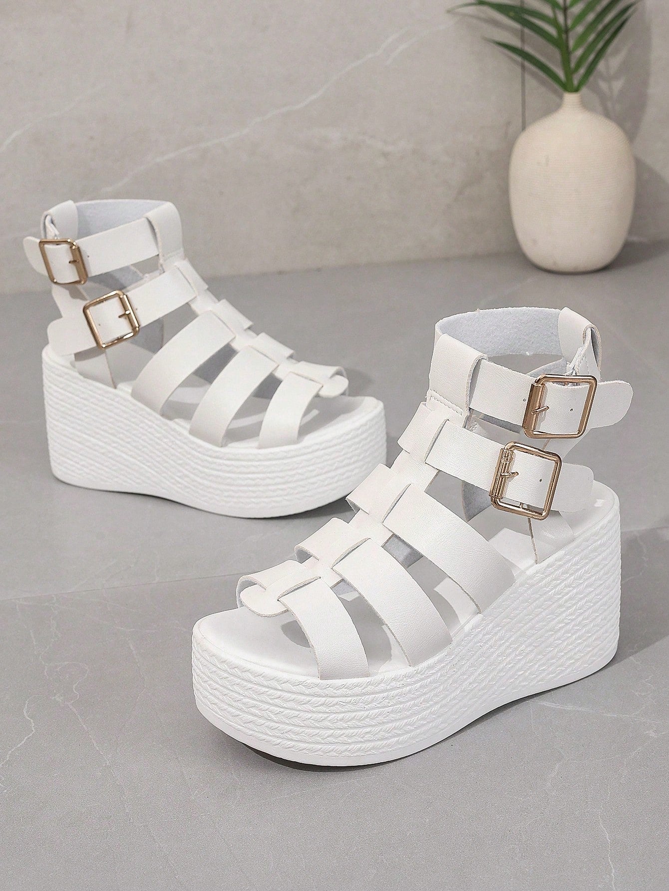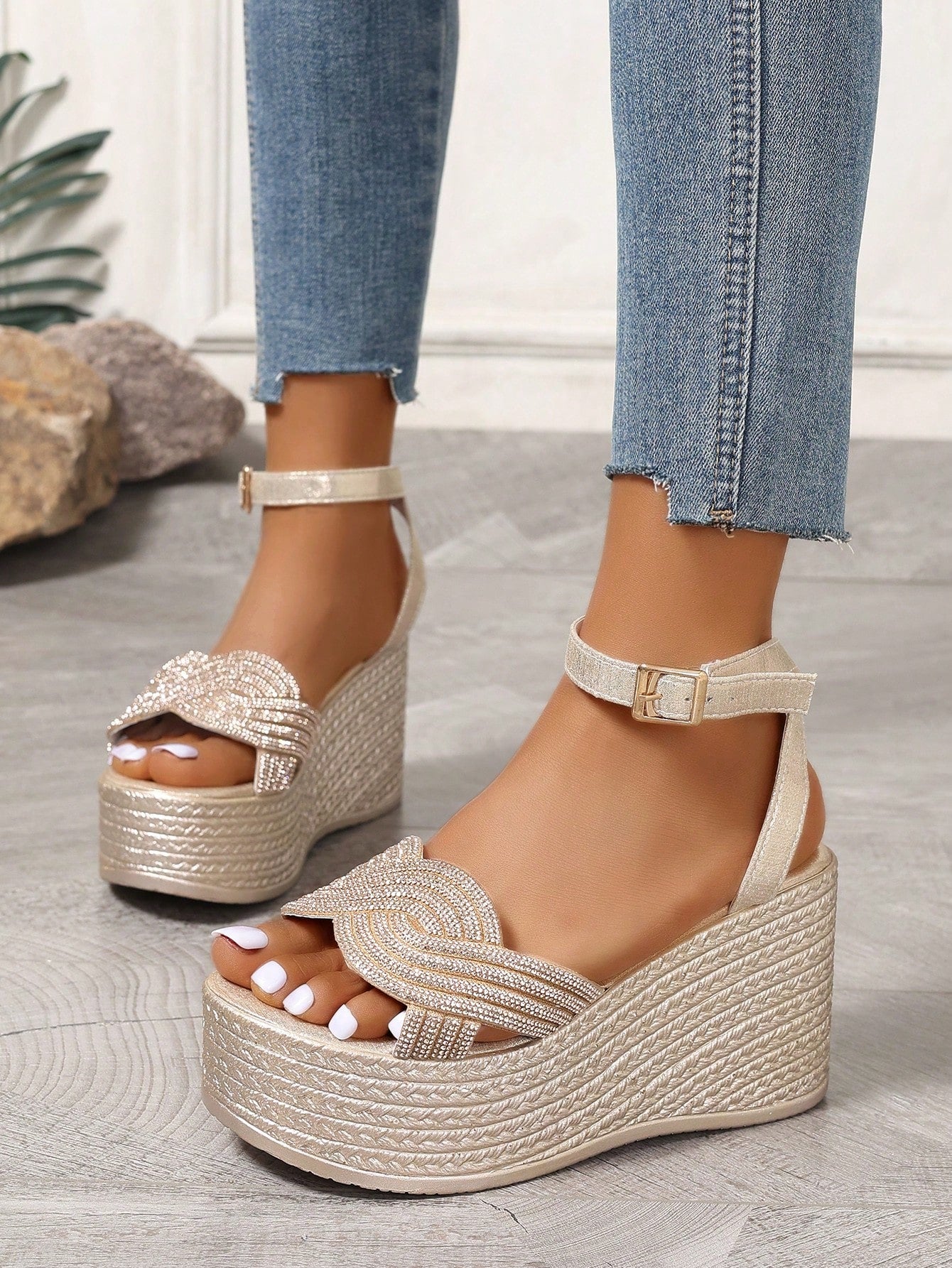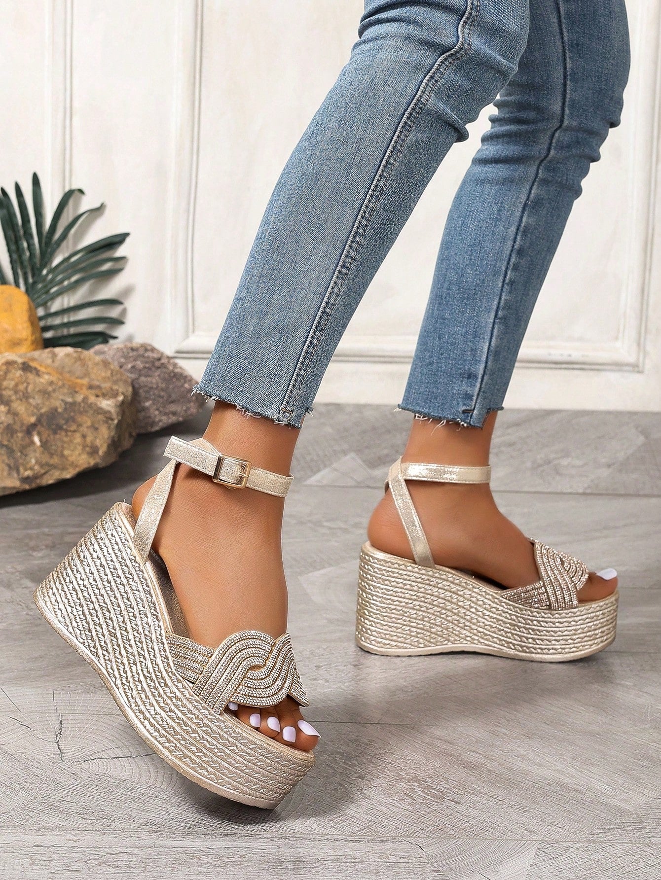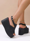 Summer Style: Women's Plus Size Waterproof Platform Wedge Sandals with Braided Straps