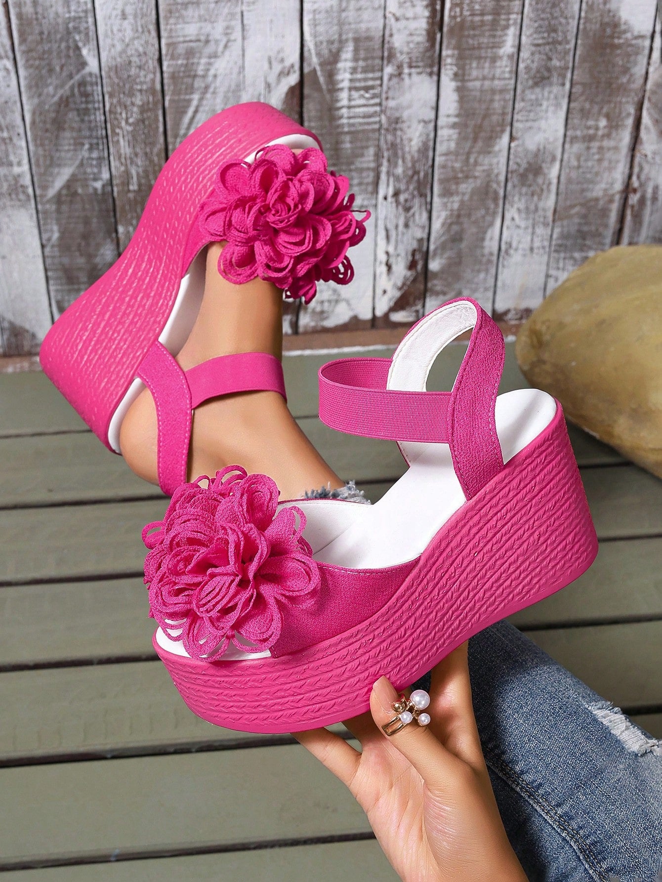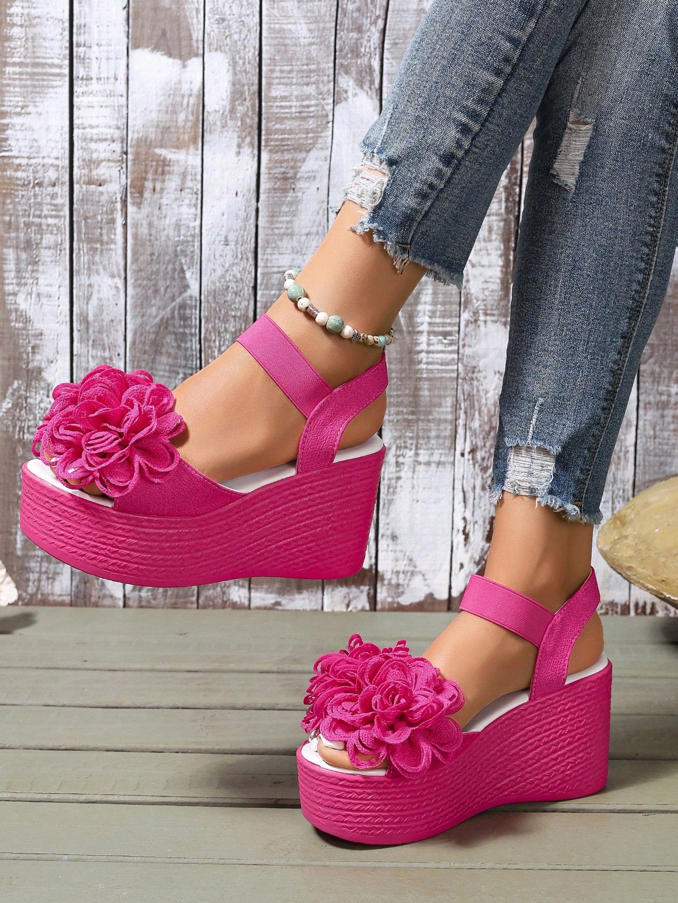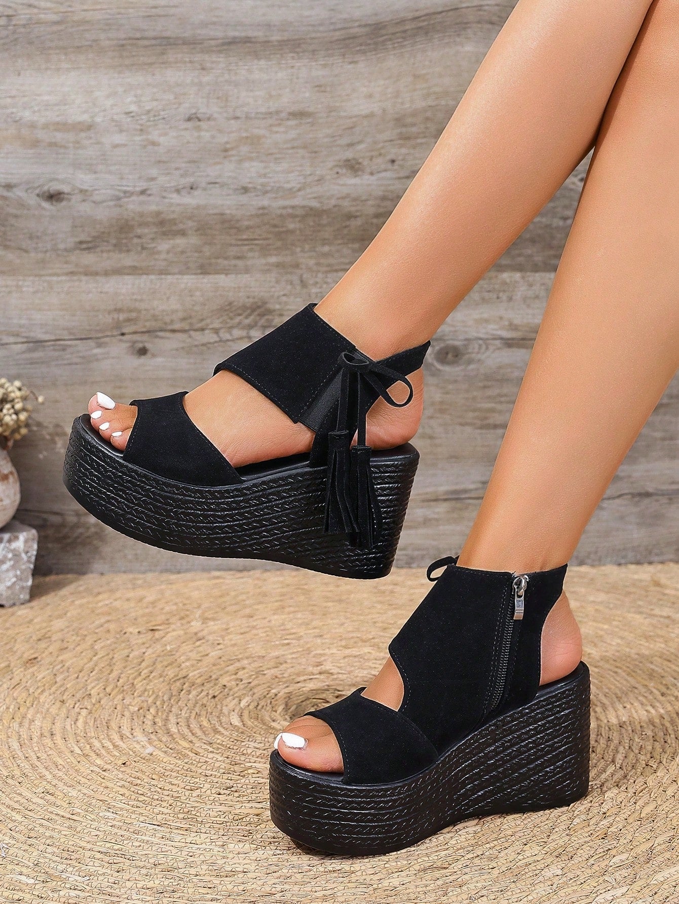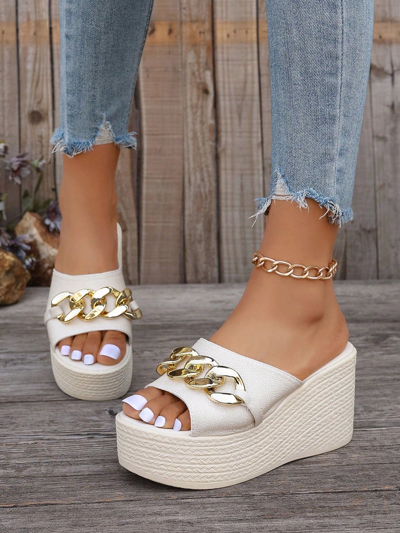 Introducing the Summer Style: Women's Plus Size Waterproof Platform Wedge Sandals with Braided Straps. Beat the heat with these stylish sandals featuring a waterproof platform and comfortable, braided straps. Elevate your look while staying cool and dry in any weather. Available in plus sizes.