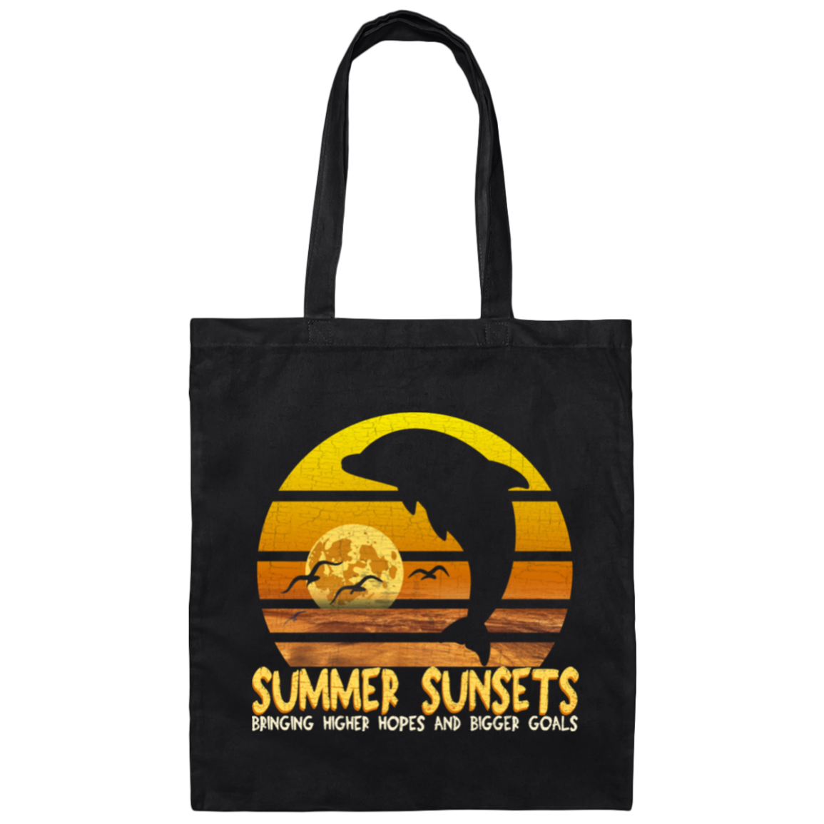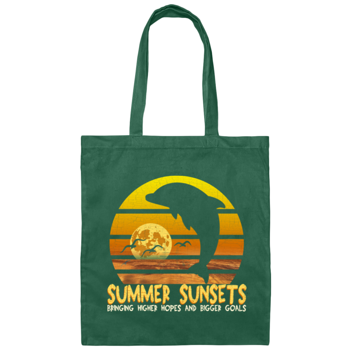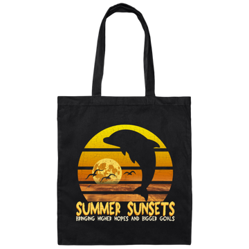 Summer Sunset With Dolphin, Birds, Moon And Sea Canvas Tote Bag