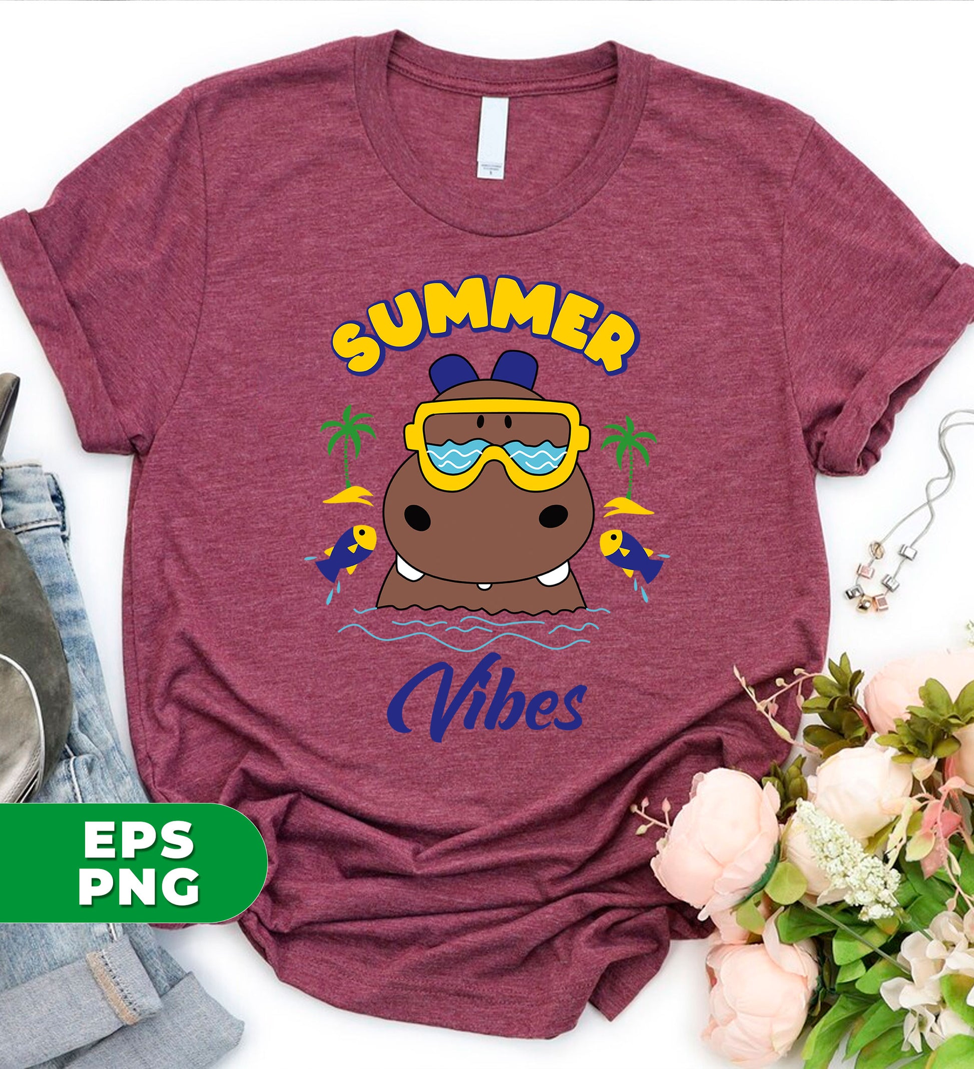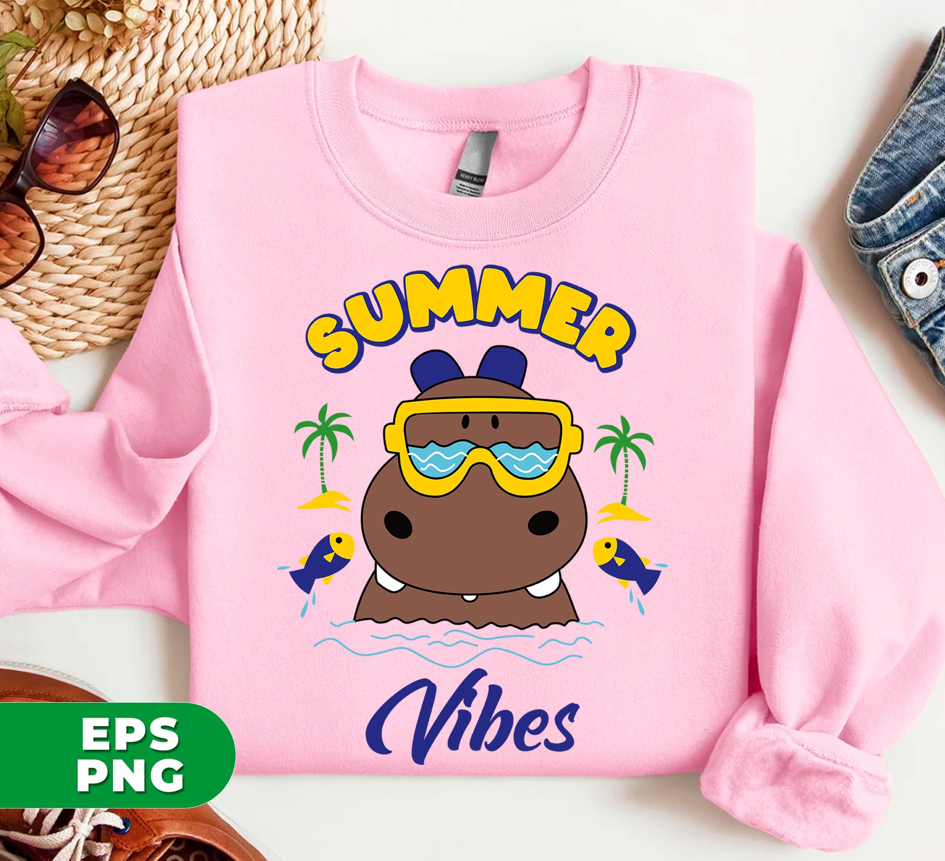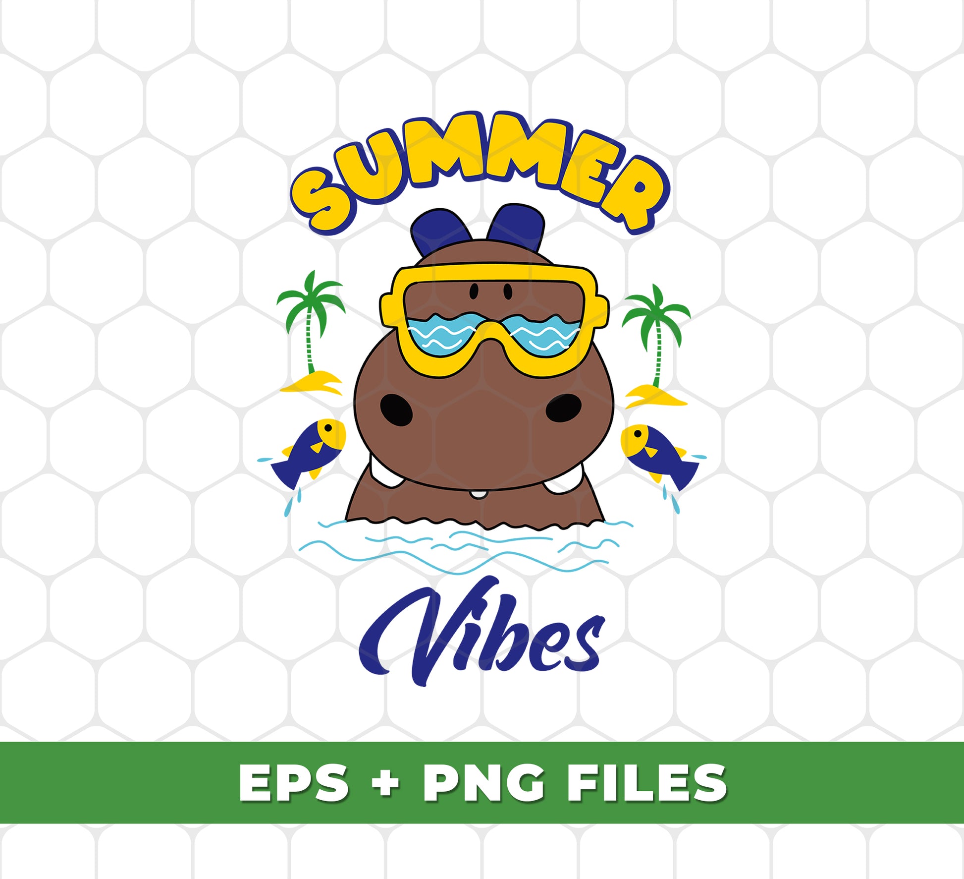 Summer Vibes, Hippo Summer, Hippo In Beach, Cute Hippo, Digital Files, Png Sublimation