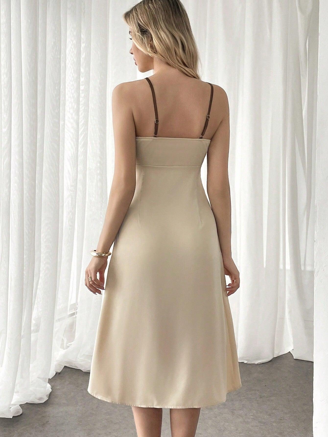 Sun-Kissed Style: Summer Casual Color Block Spaghetti Strap Midi Dress