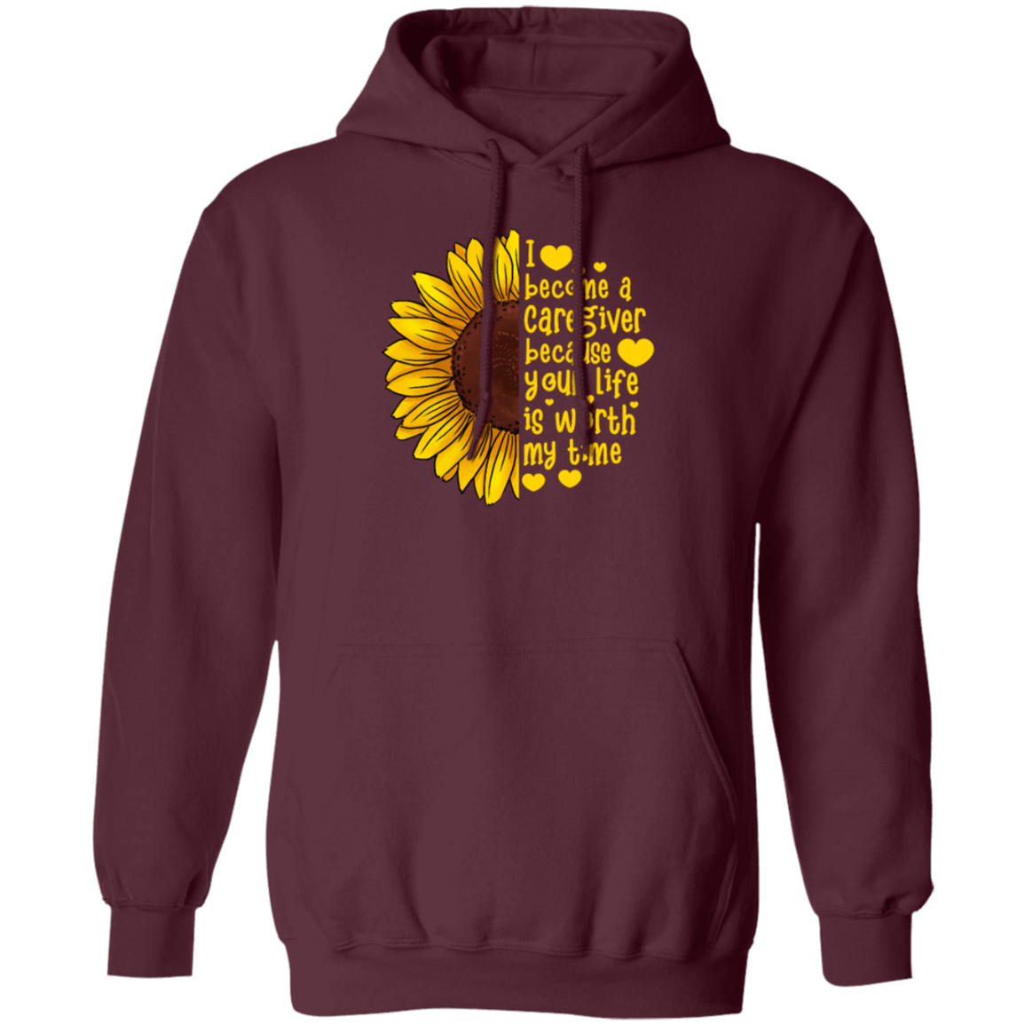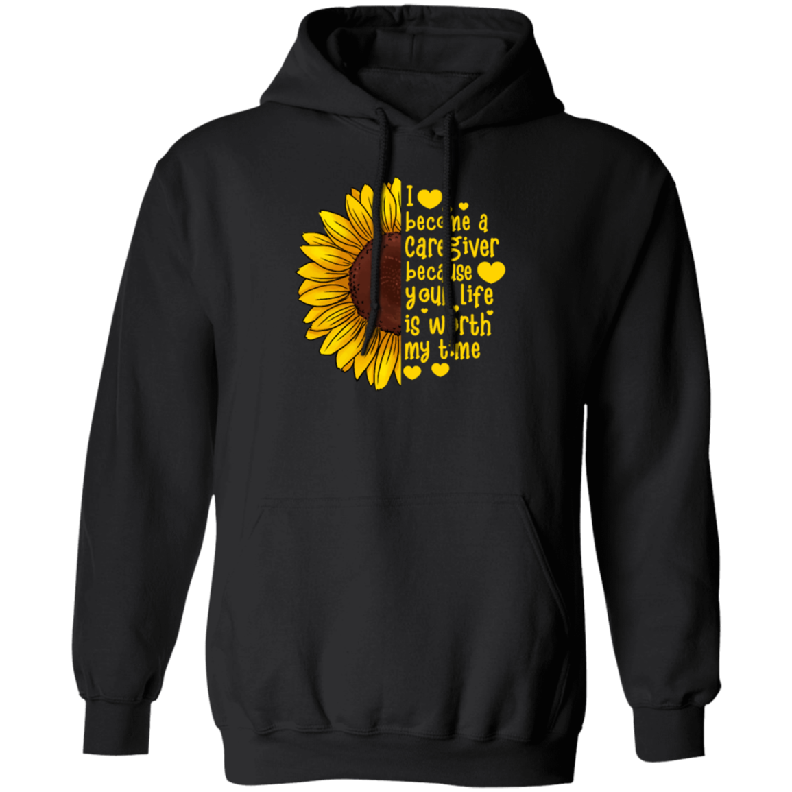 Sunflower Gift, I Become A Caregiver Because Your Life Is Worth My Time Pullover Hoodie