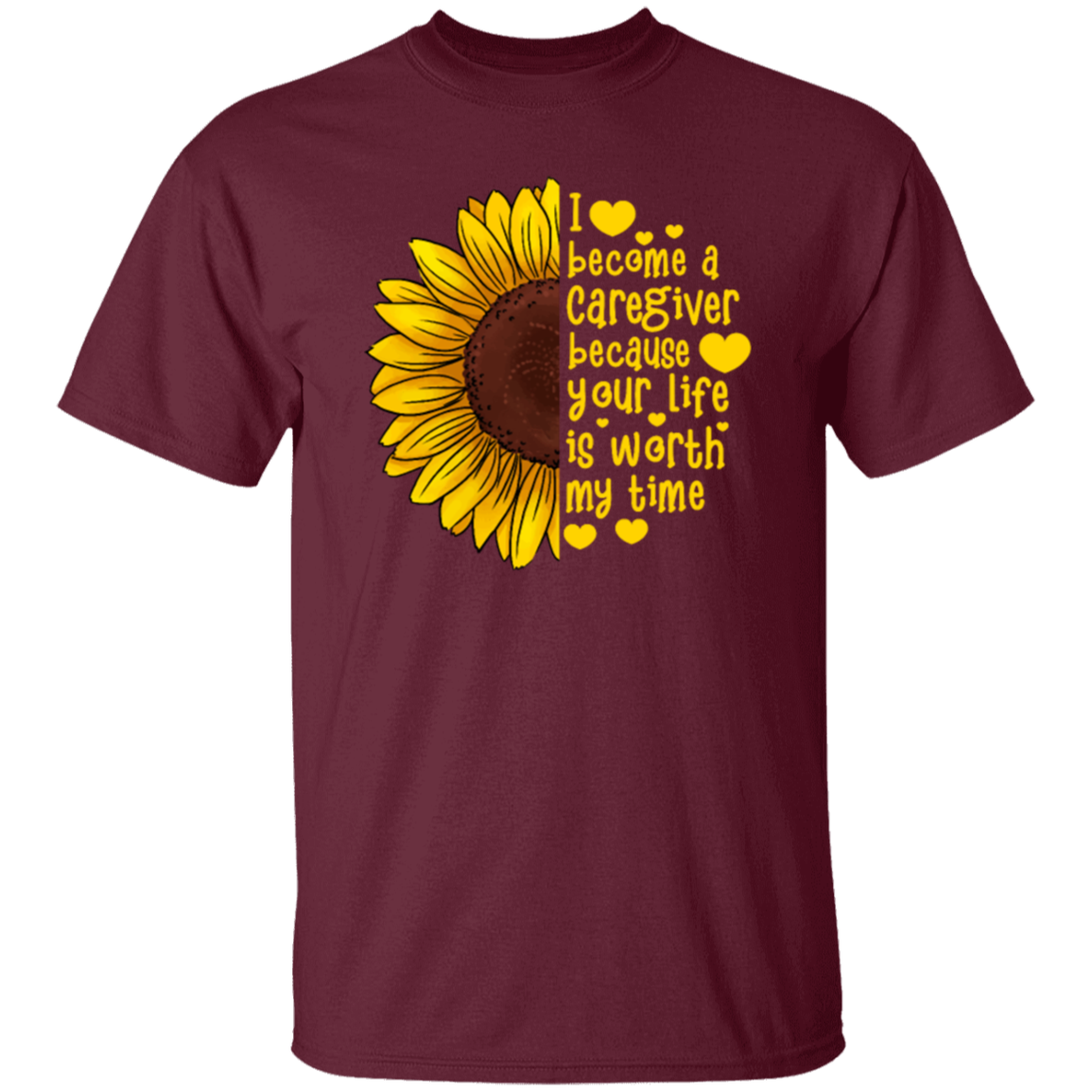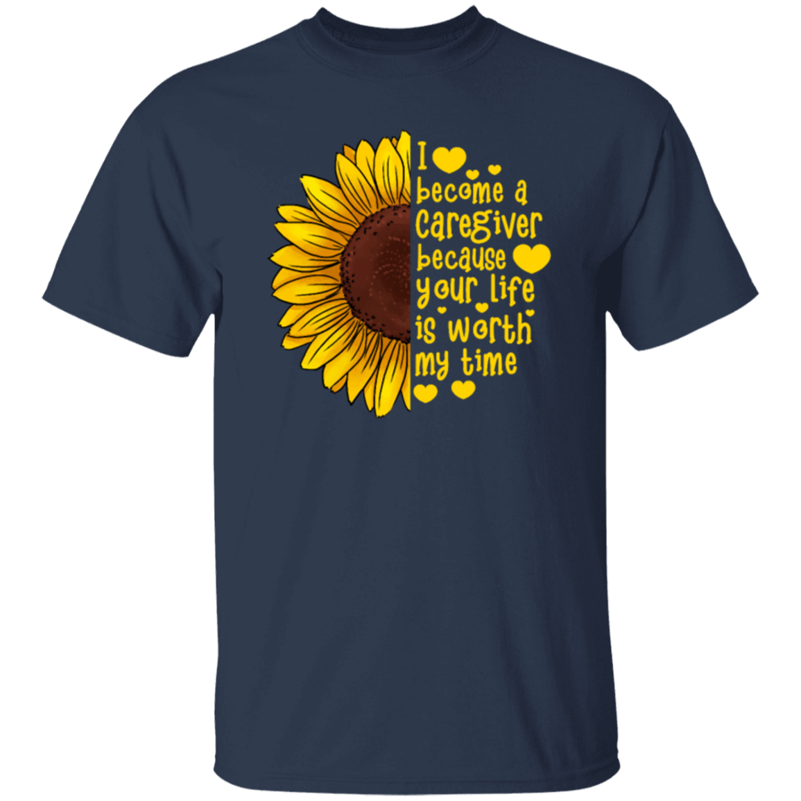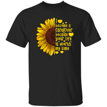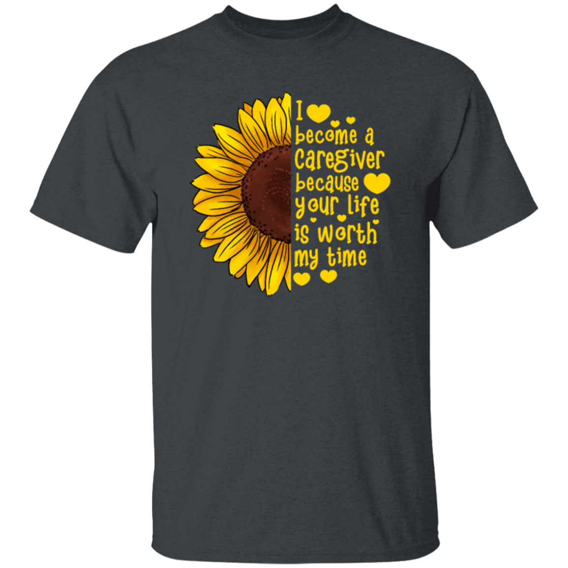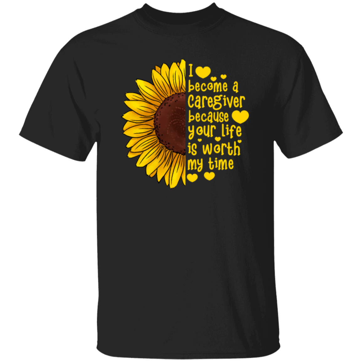 Sunflower Gift, I Become A Caregiver Because Your Life Is Worth My Time Unisex T-Shirt