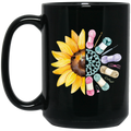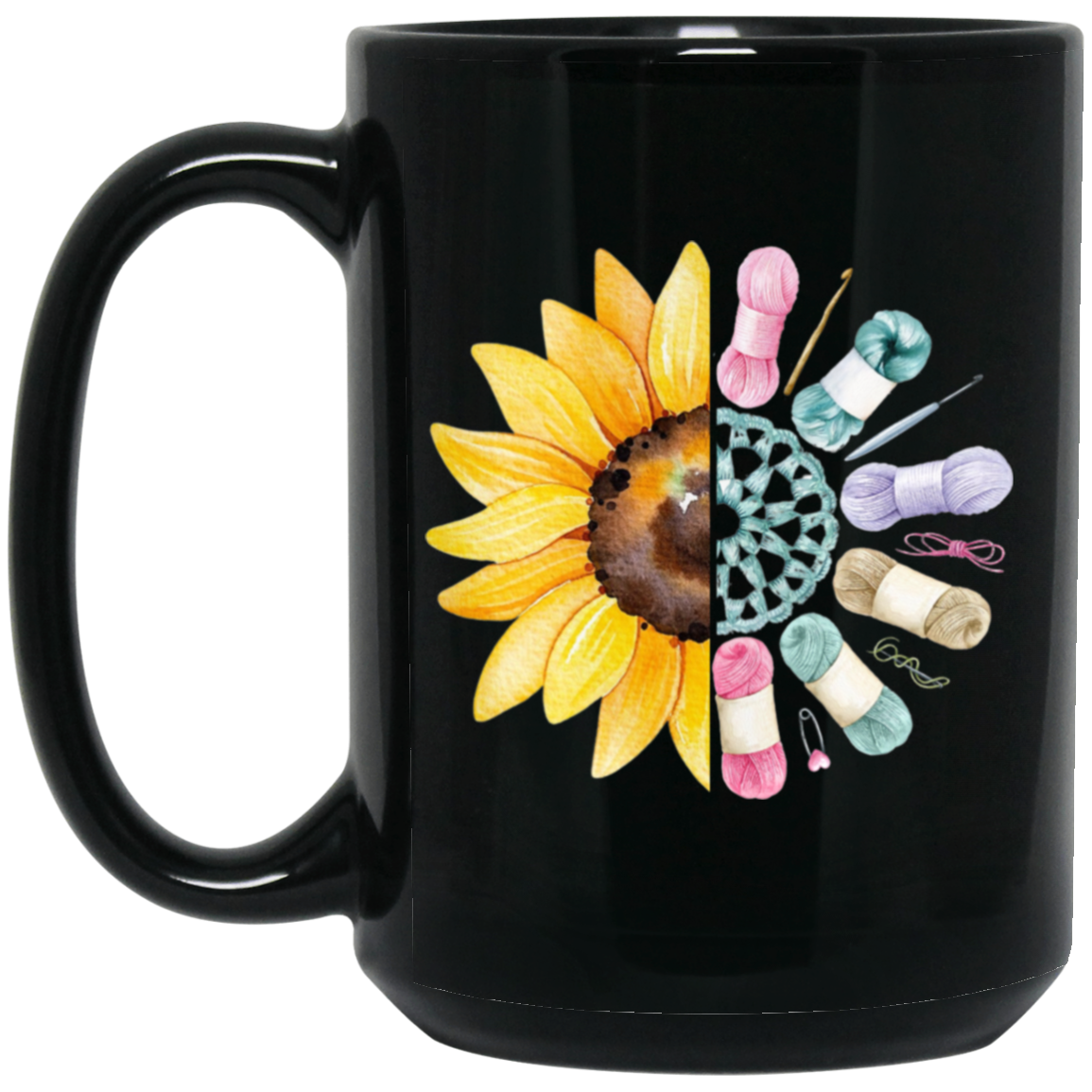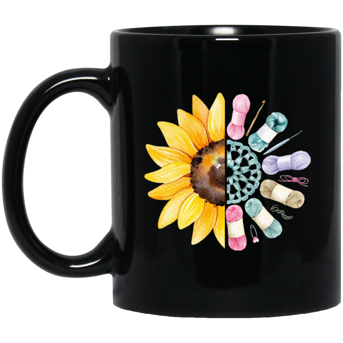 Sunflower Lover, Pretty Sunflower Crocheting Knitting For Women, Love Knitter Black Mug