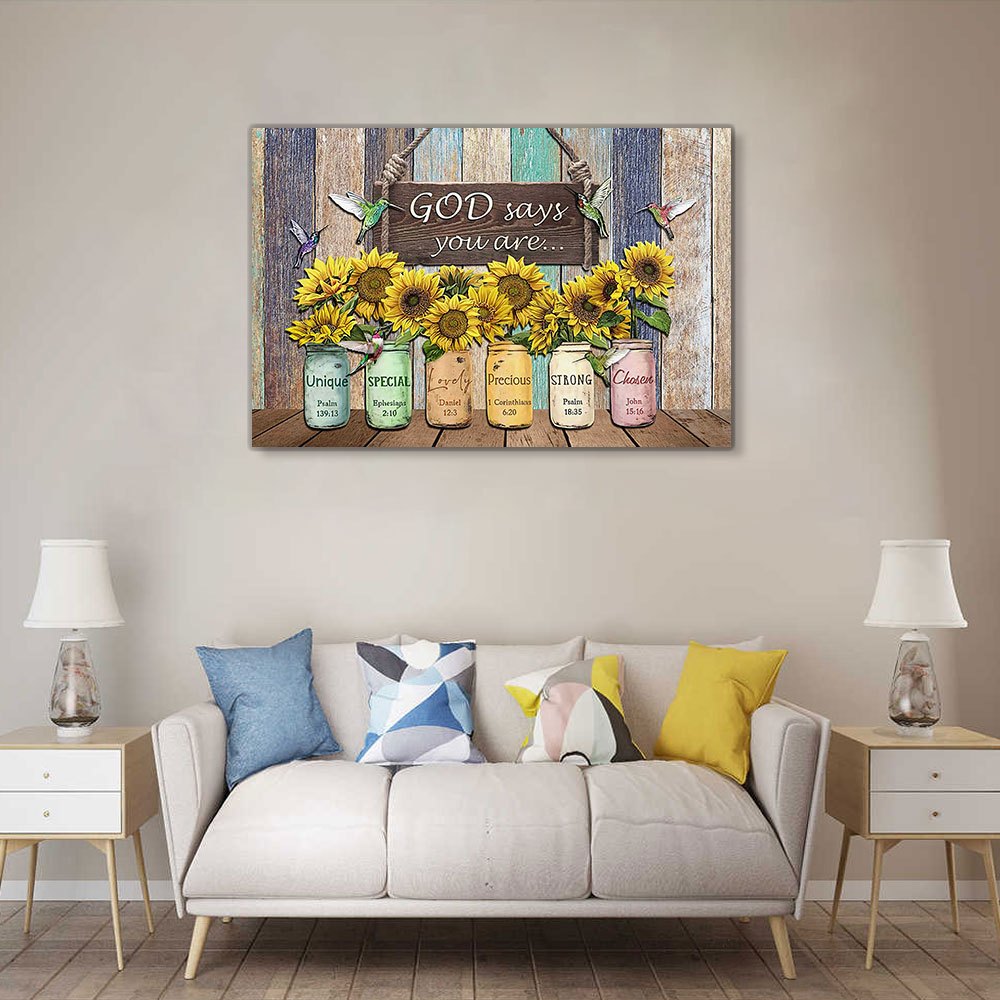 Sunflower Vase Board Canvas Painting, God Says Canvas Vinatge Framed