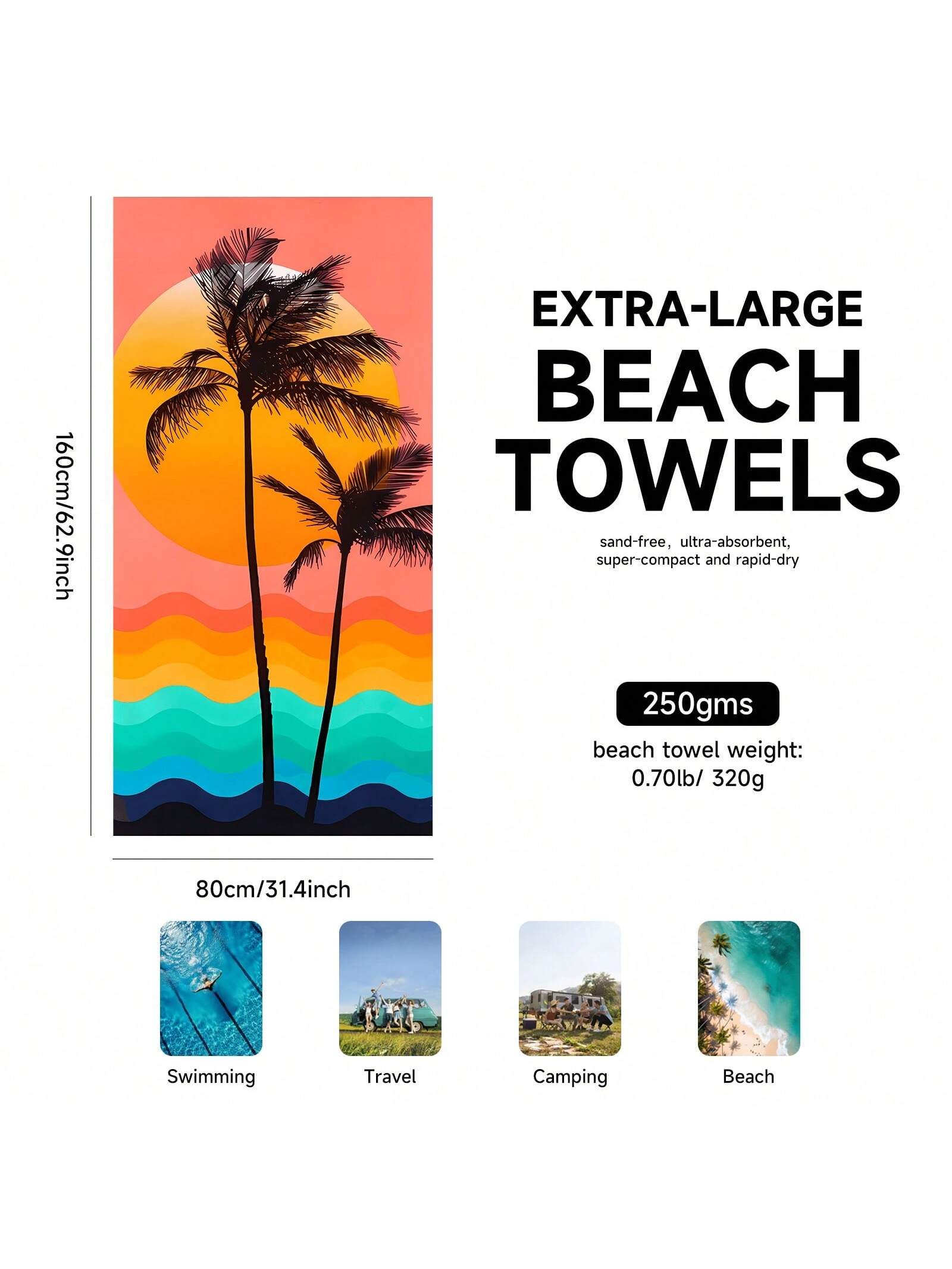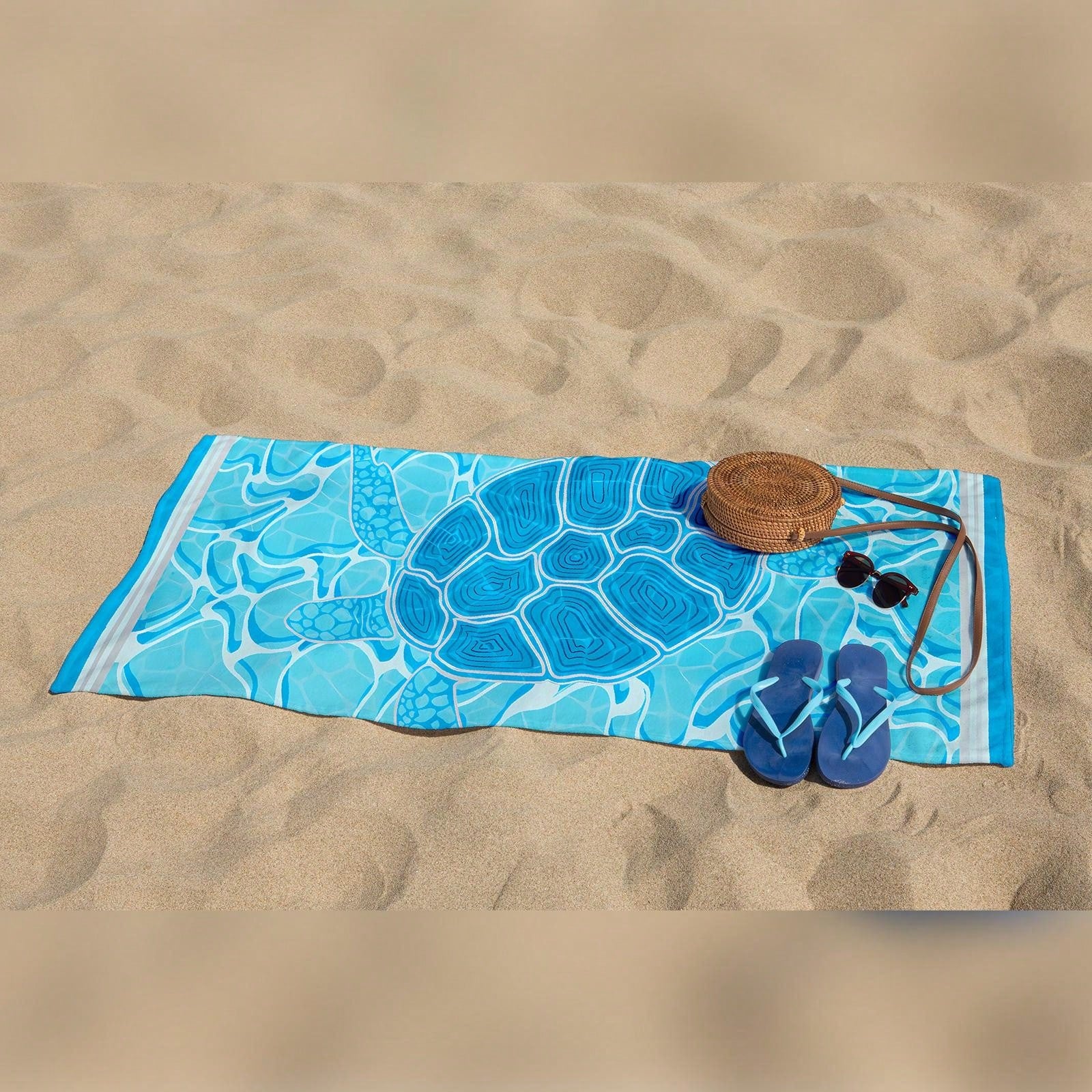 Sunset and Sea Turtle Sandproof Beach Towel - Quick Drying, Perfect for Sports, Travel, Yoga, and More