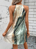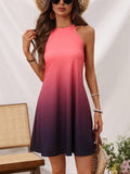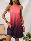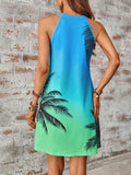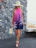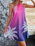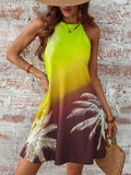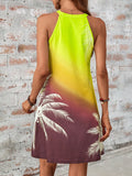 Sunset Dreams: Tropical Print Ombre Halter Neck Dress