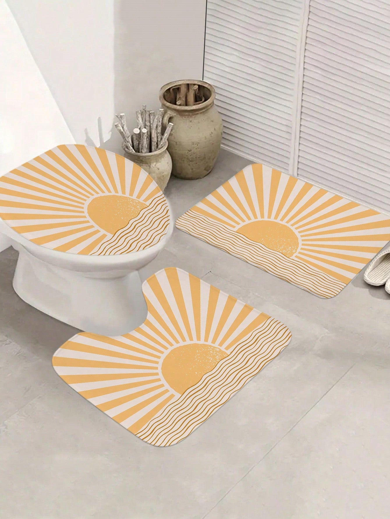 Shower Curtain and Bathroom Mat Set. The sunny pattern will add a touch of cheer to your space, while the functional aspects of the set provide durability and slip resistance. Elevate your bathroom experience now!"