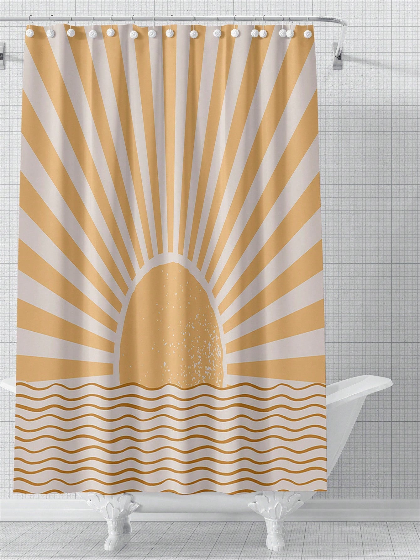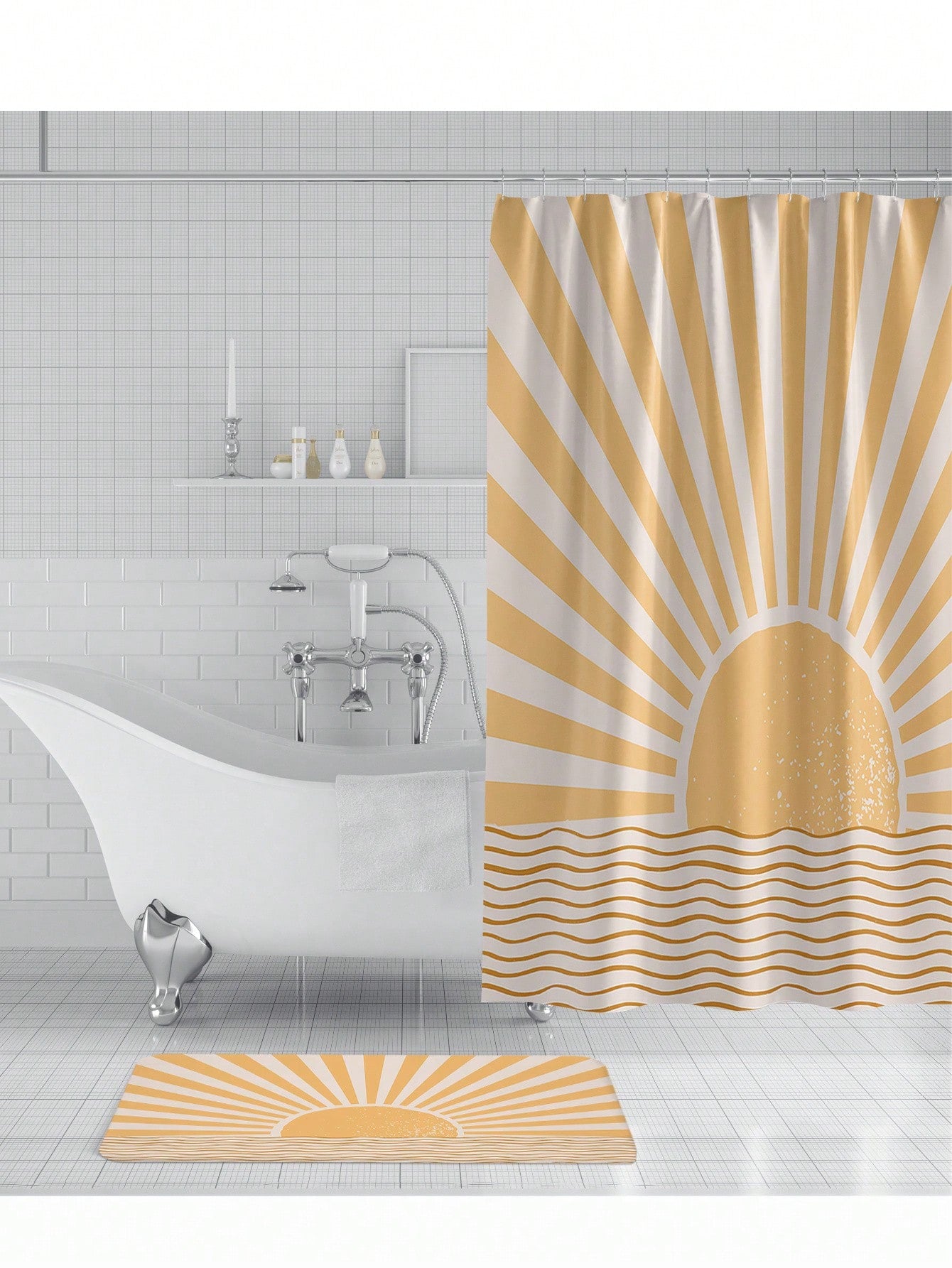 Sunshine Pattern Printed Shower Curtain and Bathroom Mat Set: Brighten Your Bathroom with Style and Functionality