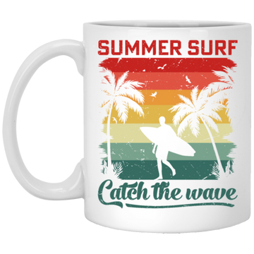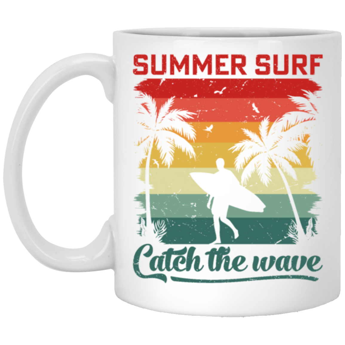 Surf Lover, Summer Surf, Catch The Wave, Retro Summer Gift, Surfing Love Gift White Mug