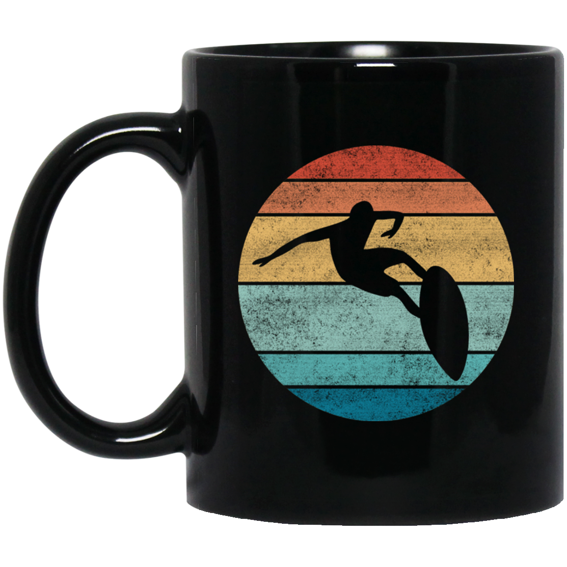 Surfing Distressed Beach, Vintage Surfer, Retro Surf Black Mug