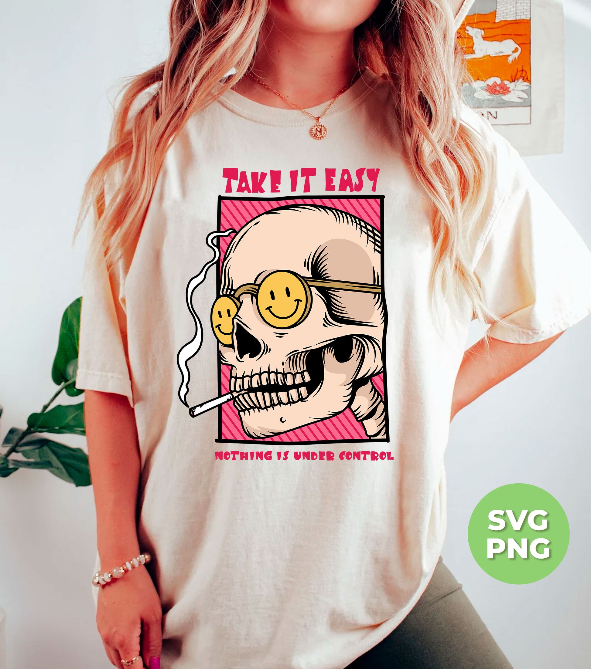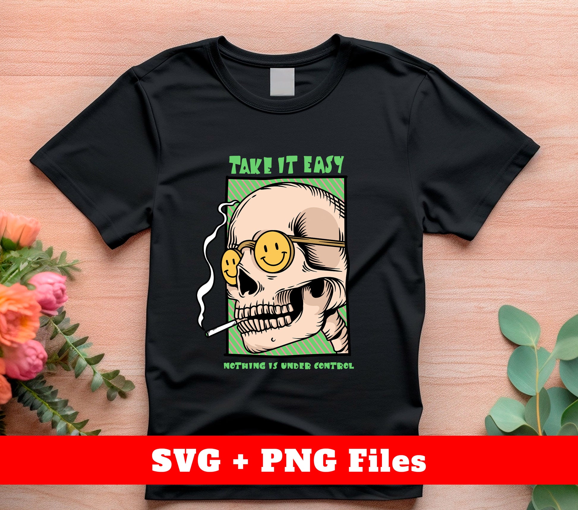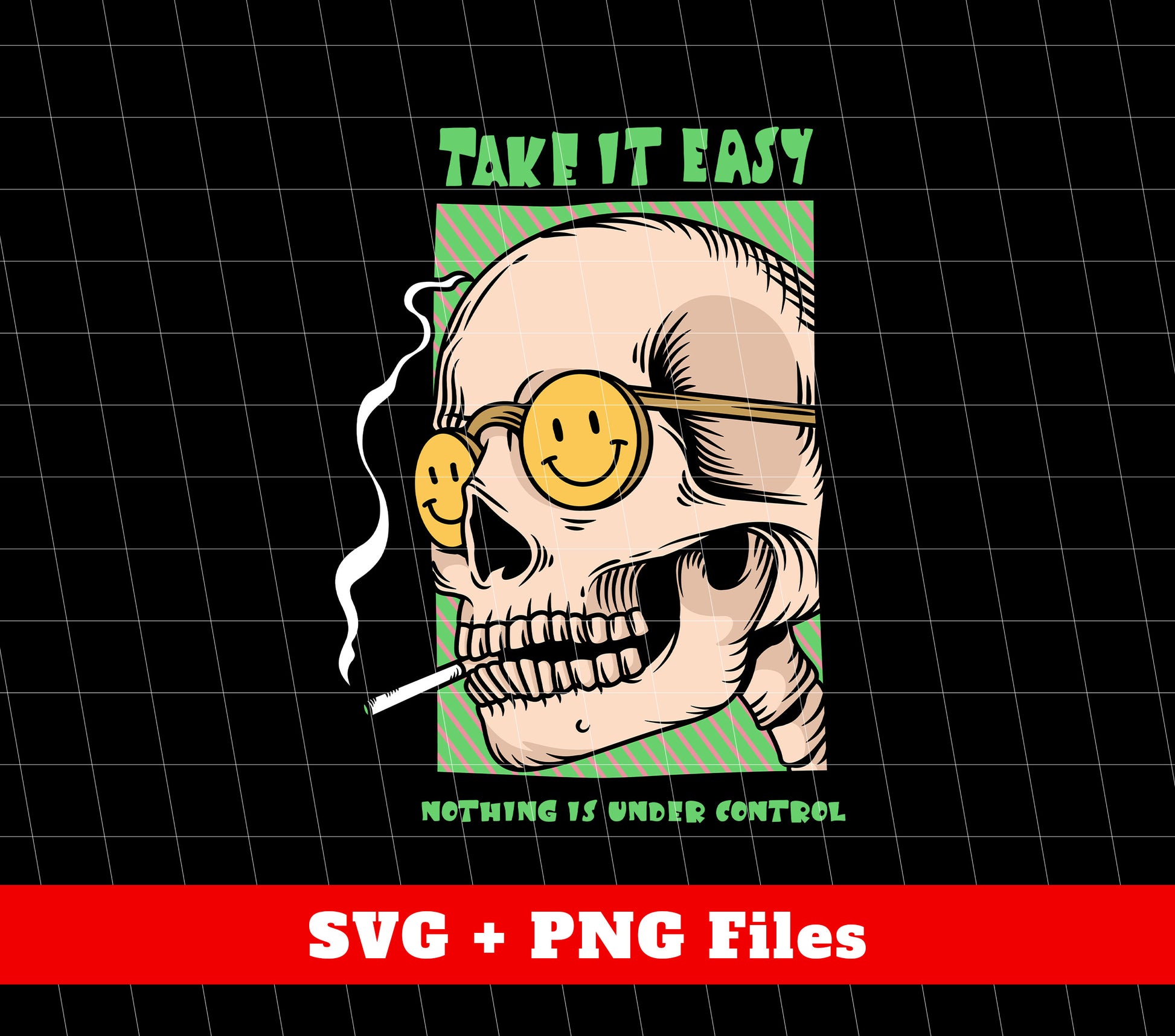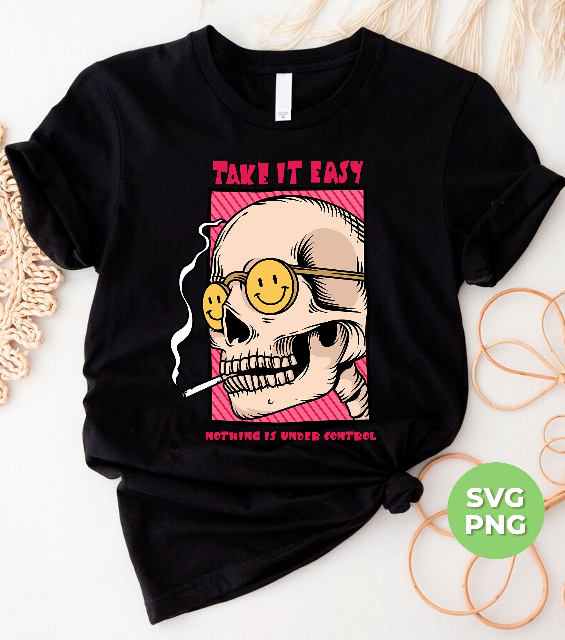 Take It Easy, Nothing Is Under Control, Skull Smoking, Digital Files, Png Sublimation