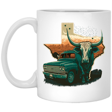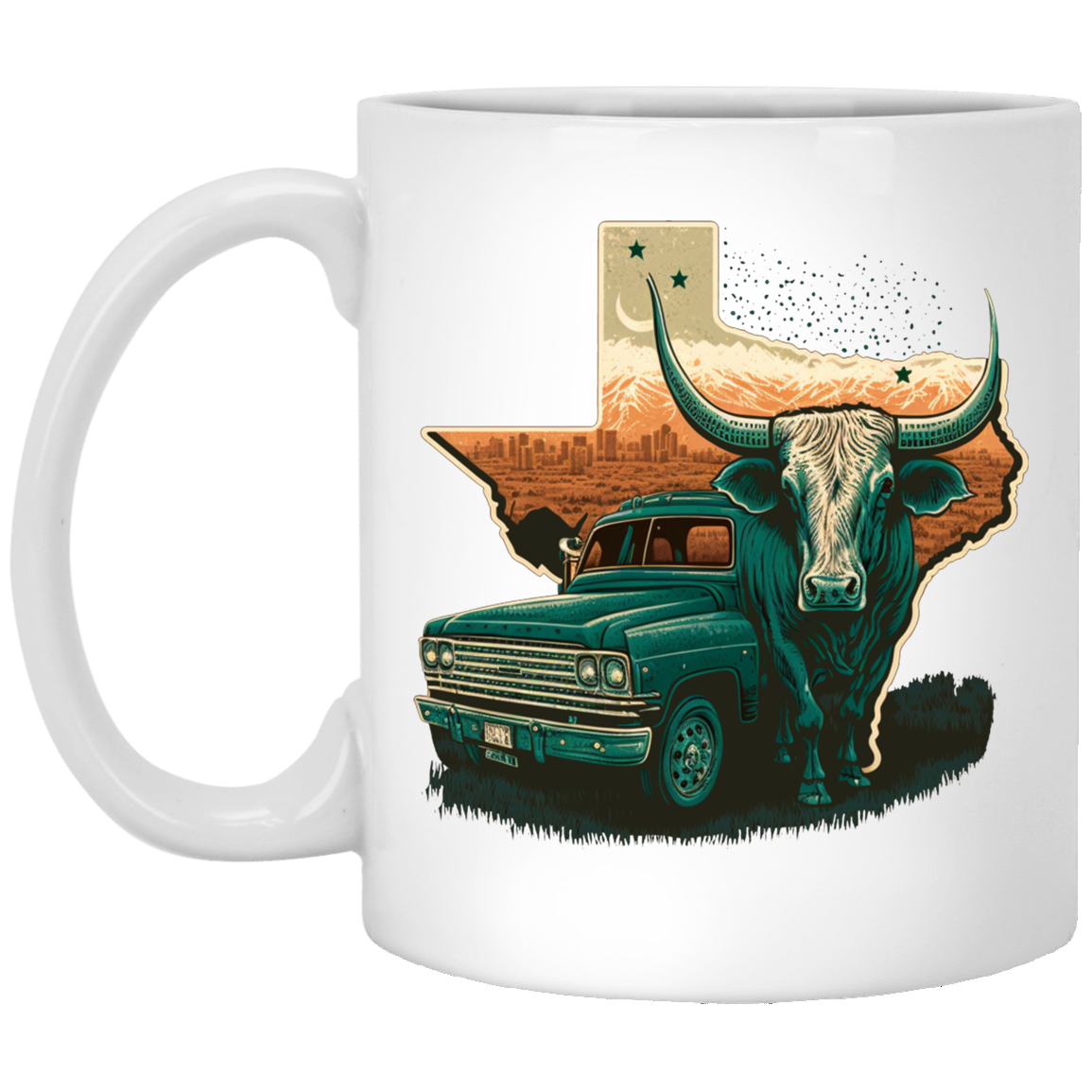 Texas Lover, Cow And Car, Texas City, Love Texas, Love Cow In Texas White Mug