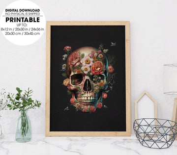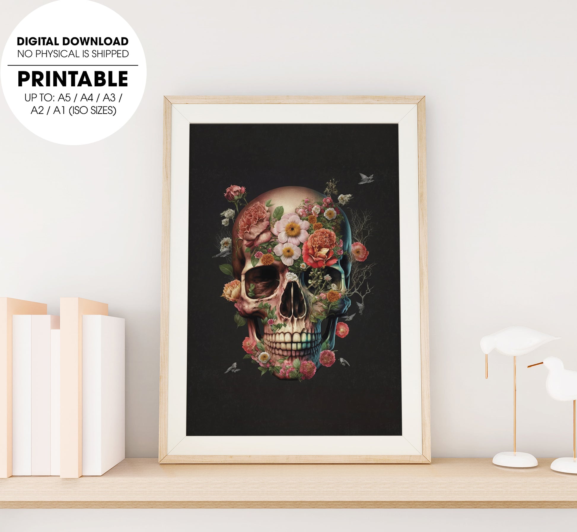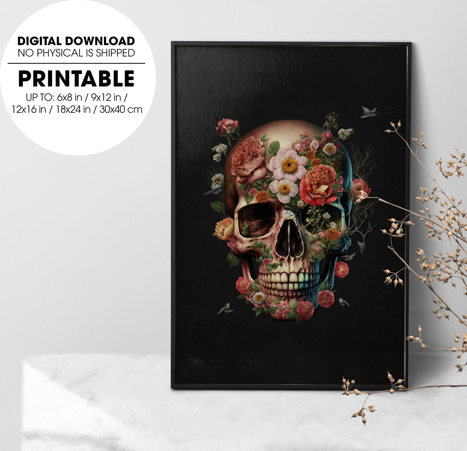 The Skull Covered By Flowers, Skull So Art With Flowers Blossom, Poster Design, Printable Art