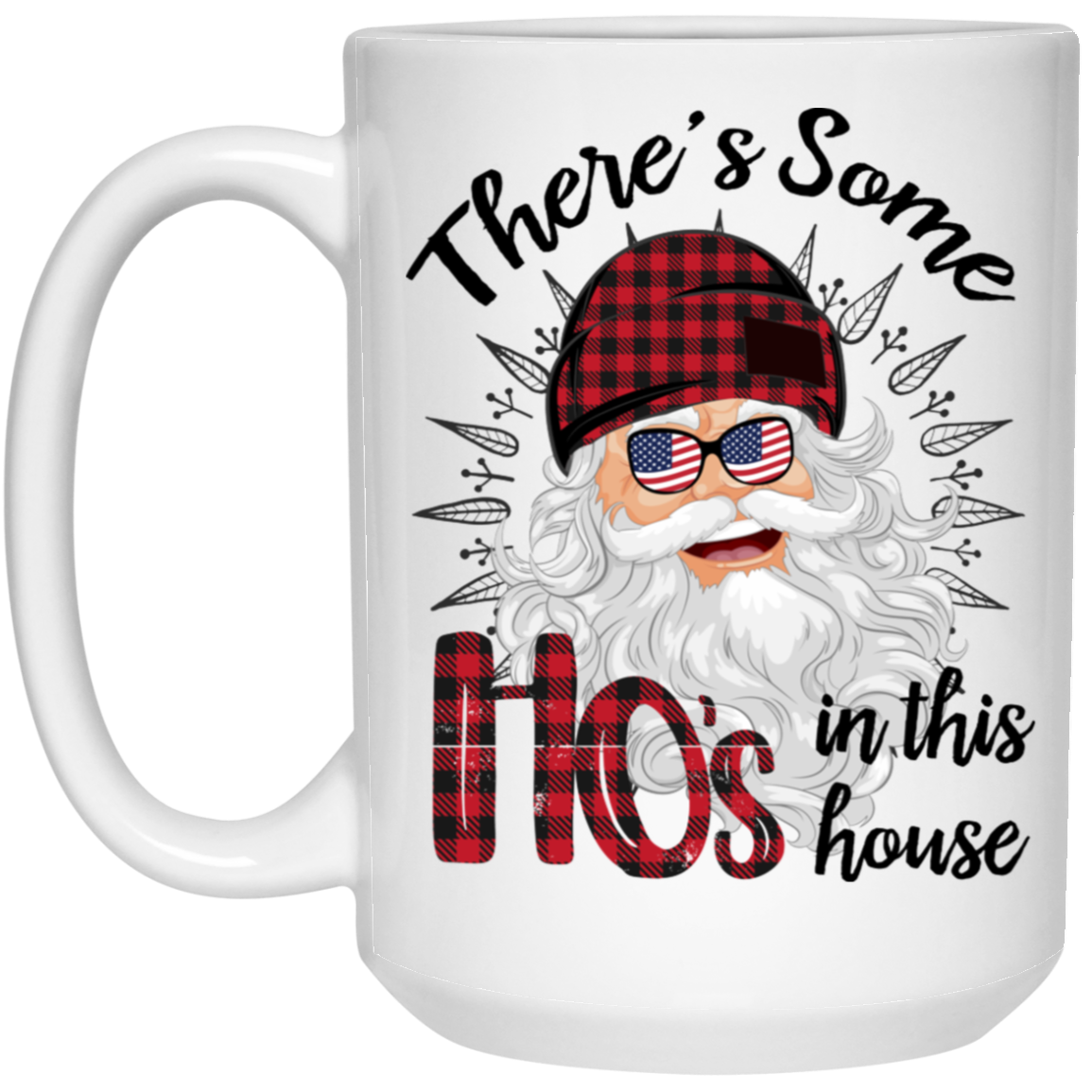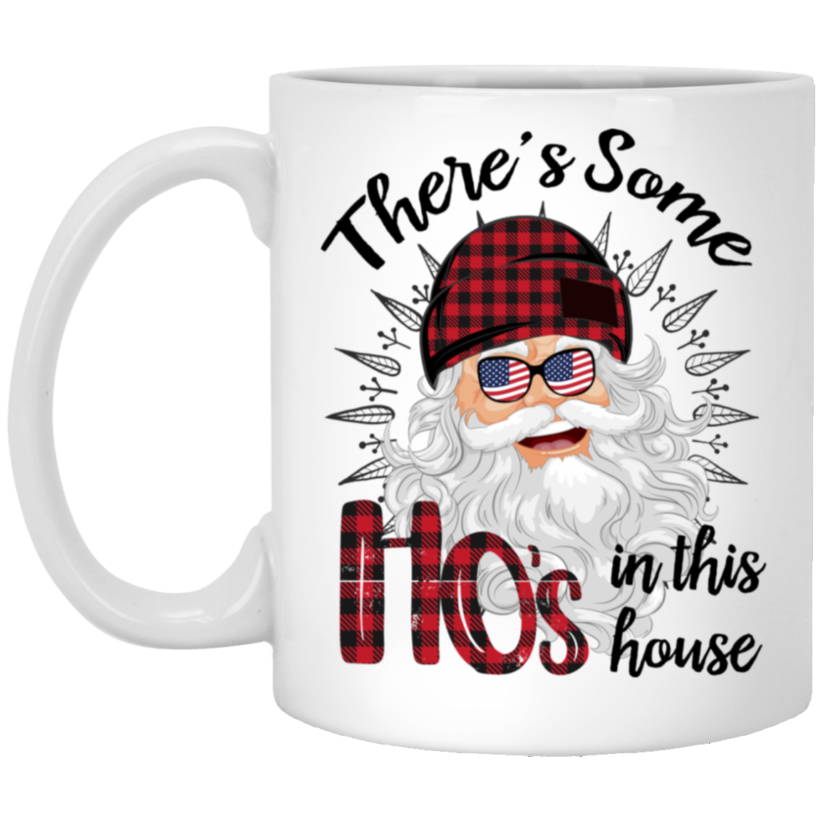 There's Some Ho's In This House, Cool Santa, Red Plaid Hat, Merry Christmas, Trendy Christmas White Mug