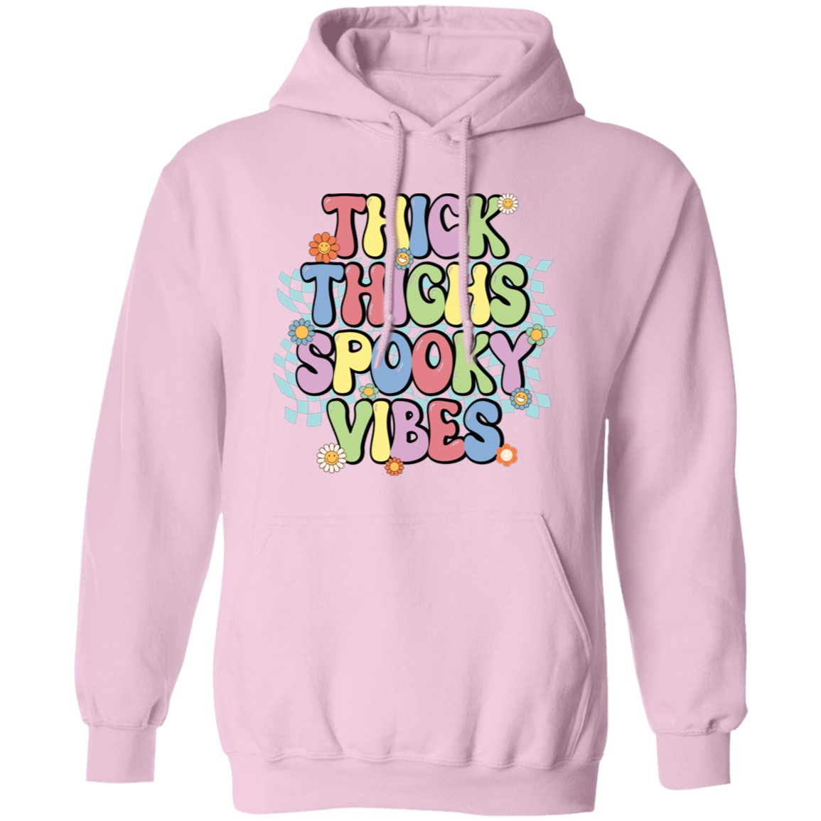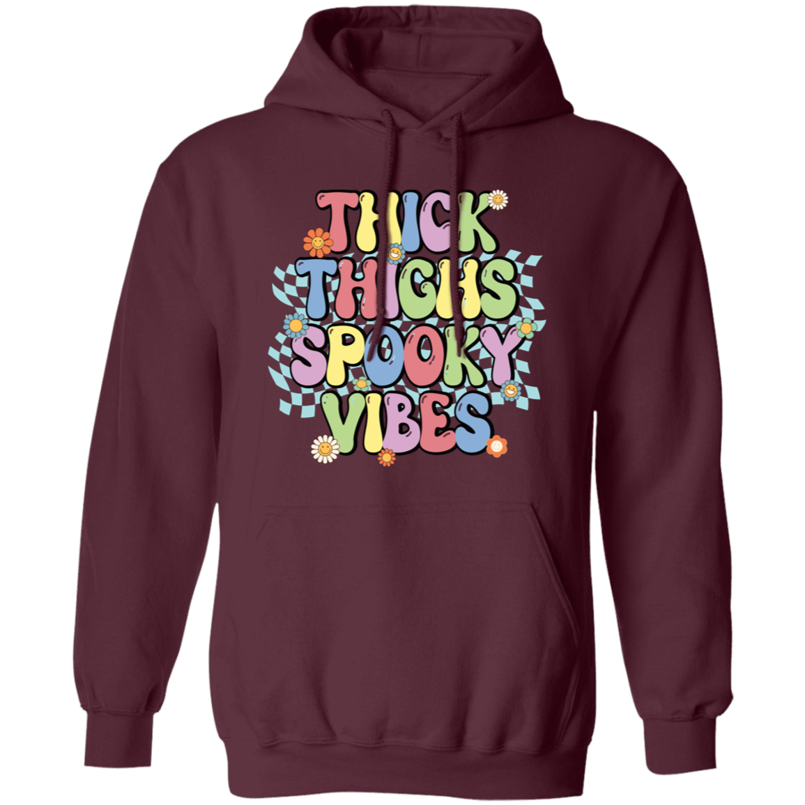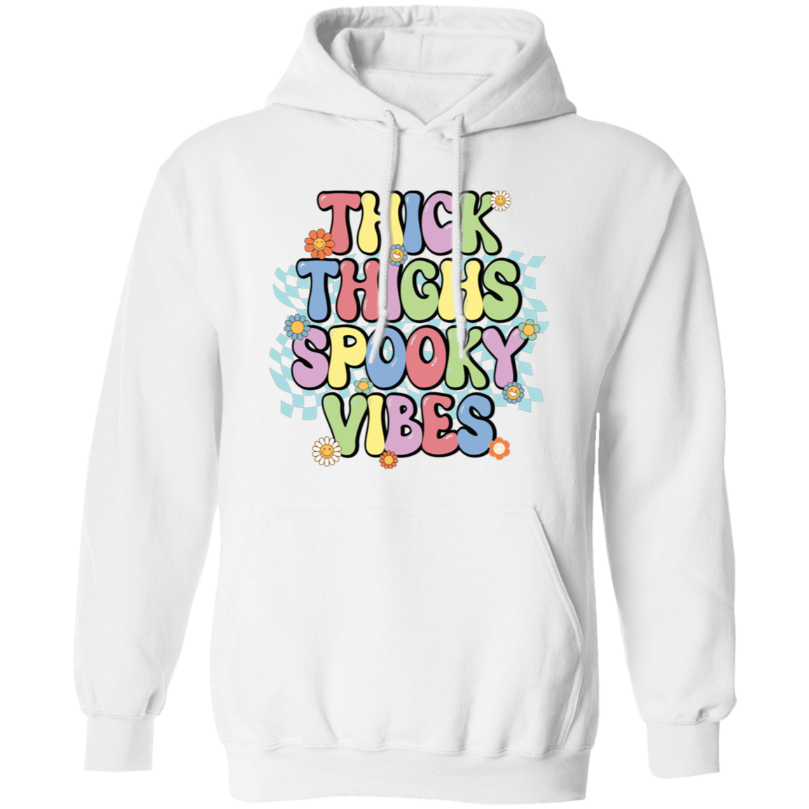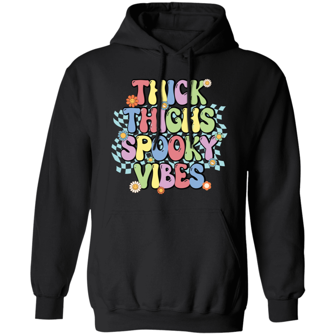 Thick Thighs Spooky Vibes, Spooky Boo, Groovy Boo Pullover Hoodie