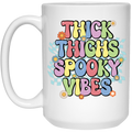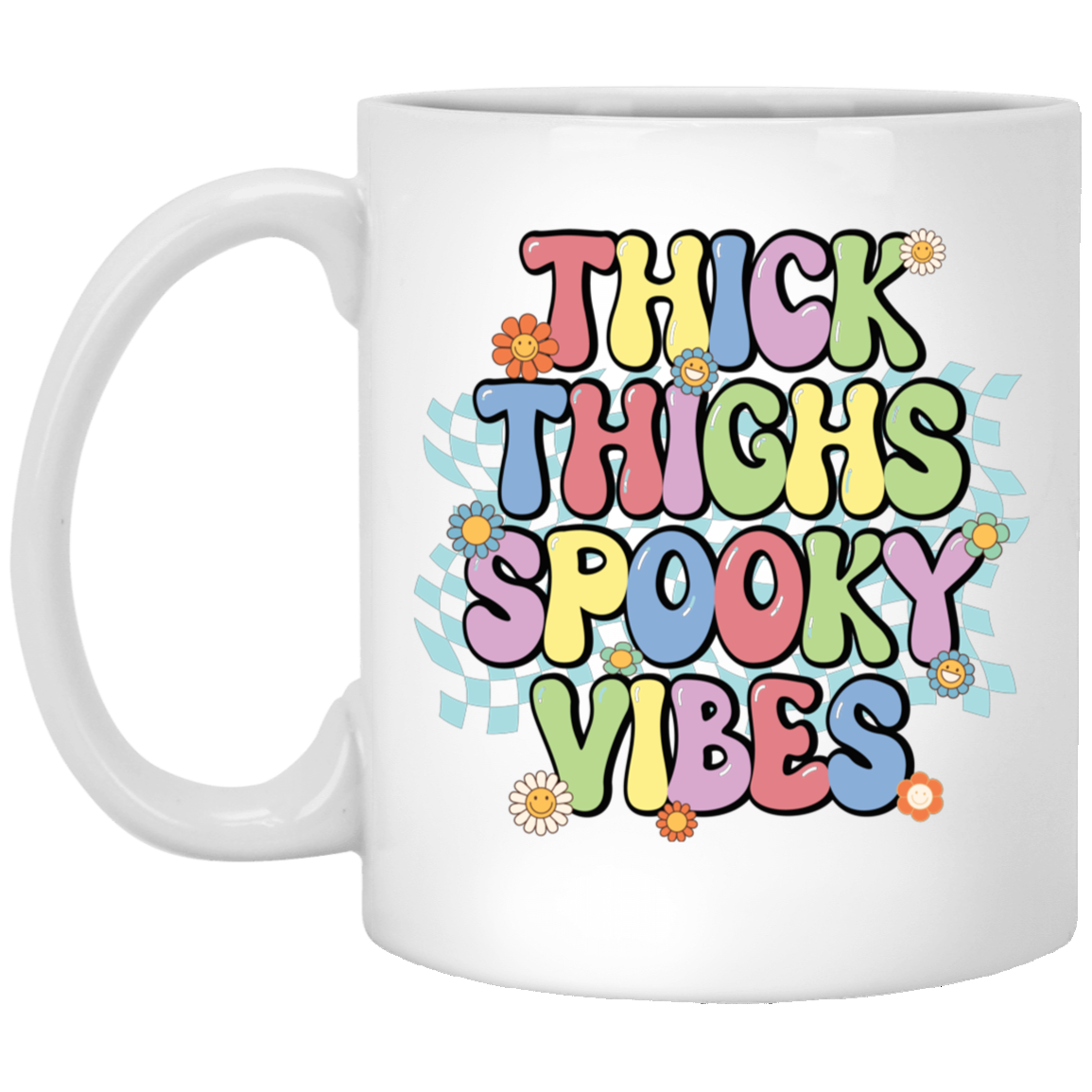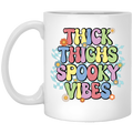 Thick Thighs Spooky Vibes, Spooky Boo, Groovy Boo White Mug