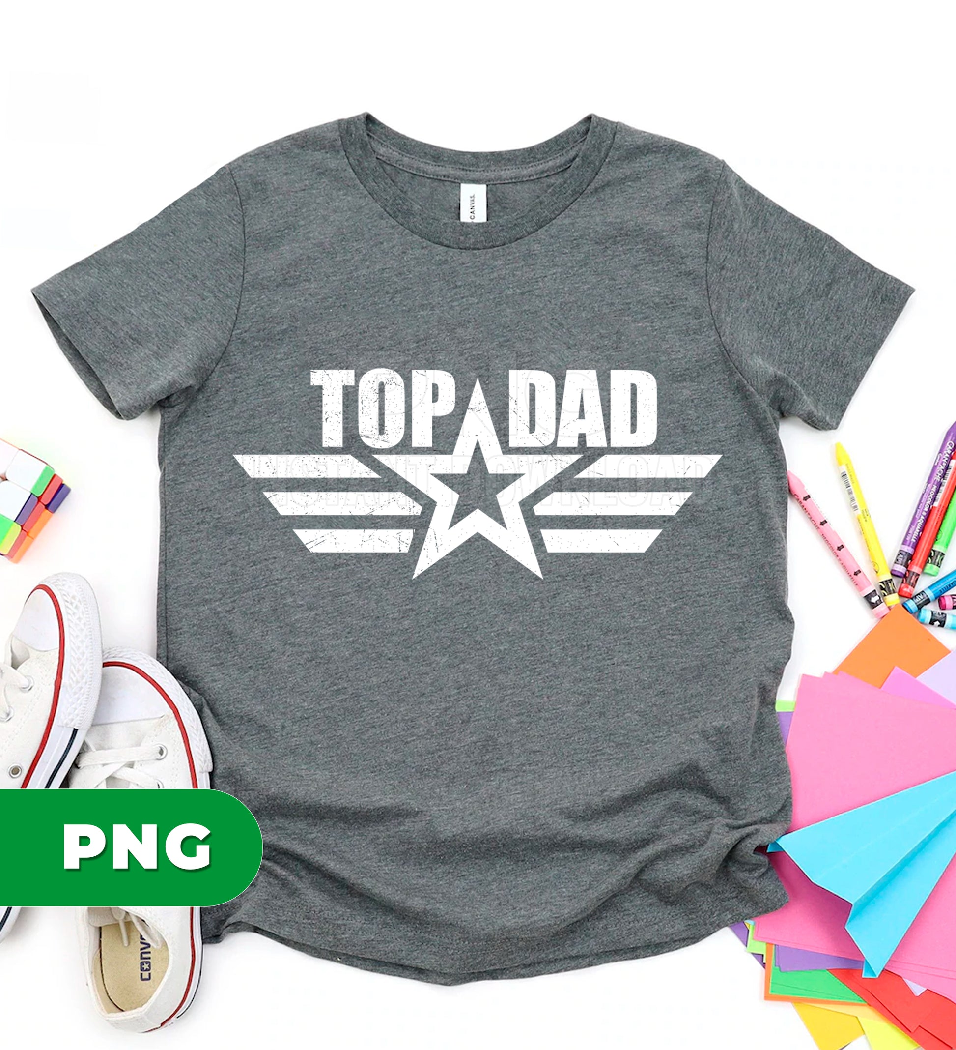 Celebrate dad with this bold “Top Dad” vintage star badge design, featuring a distressed military-inspired style. Perfect for Father’s Day, birthdays, or everyday wear, this PNG graphic is ideal for t-shirts, prints, and custom gifts. A great choice for proud dads who appreciate strong, classic, and timeless designs.