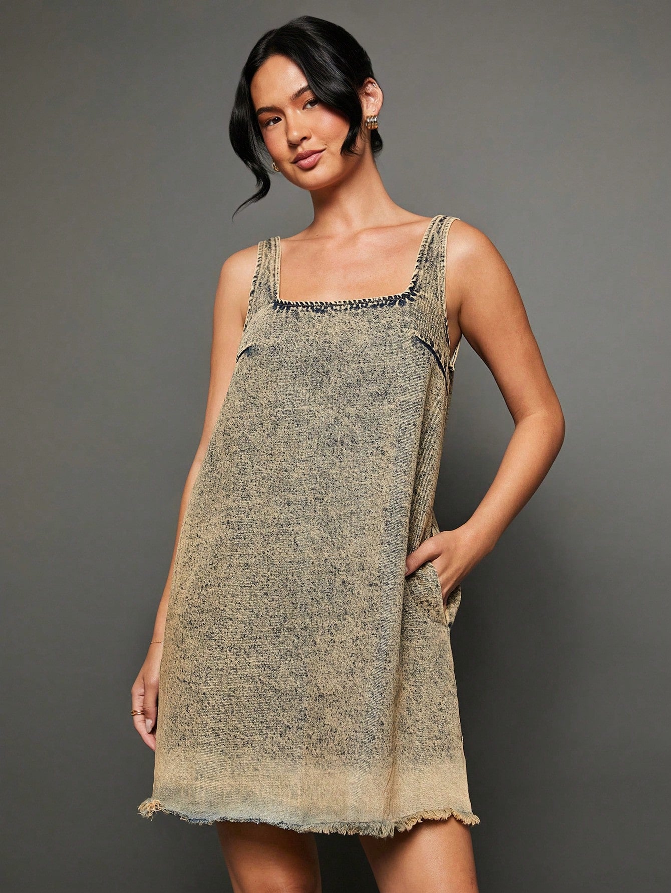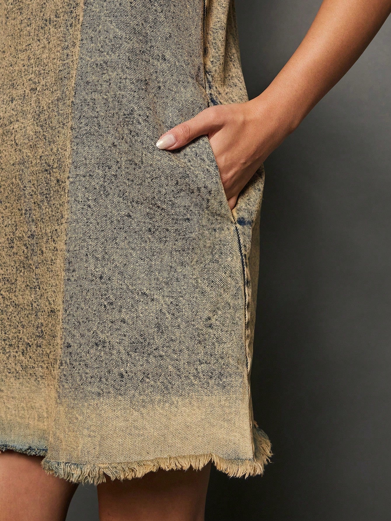 Trendy Acid Wash Mini Dress - Premium Cotton Denim for Effortless Style