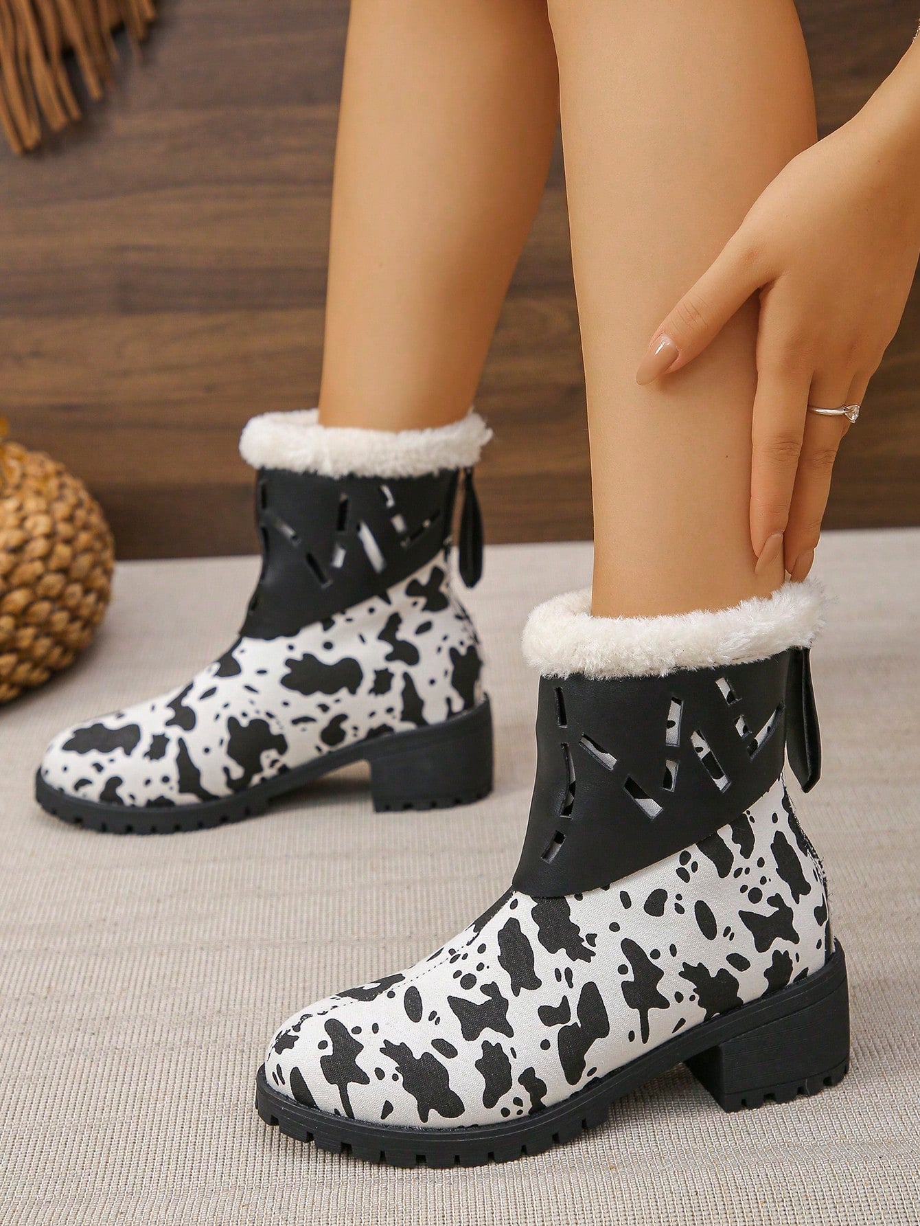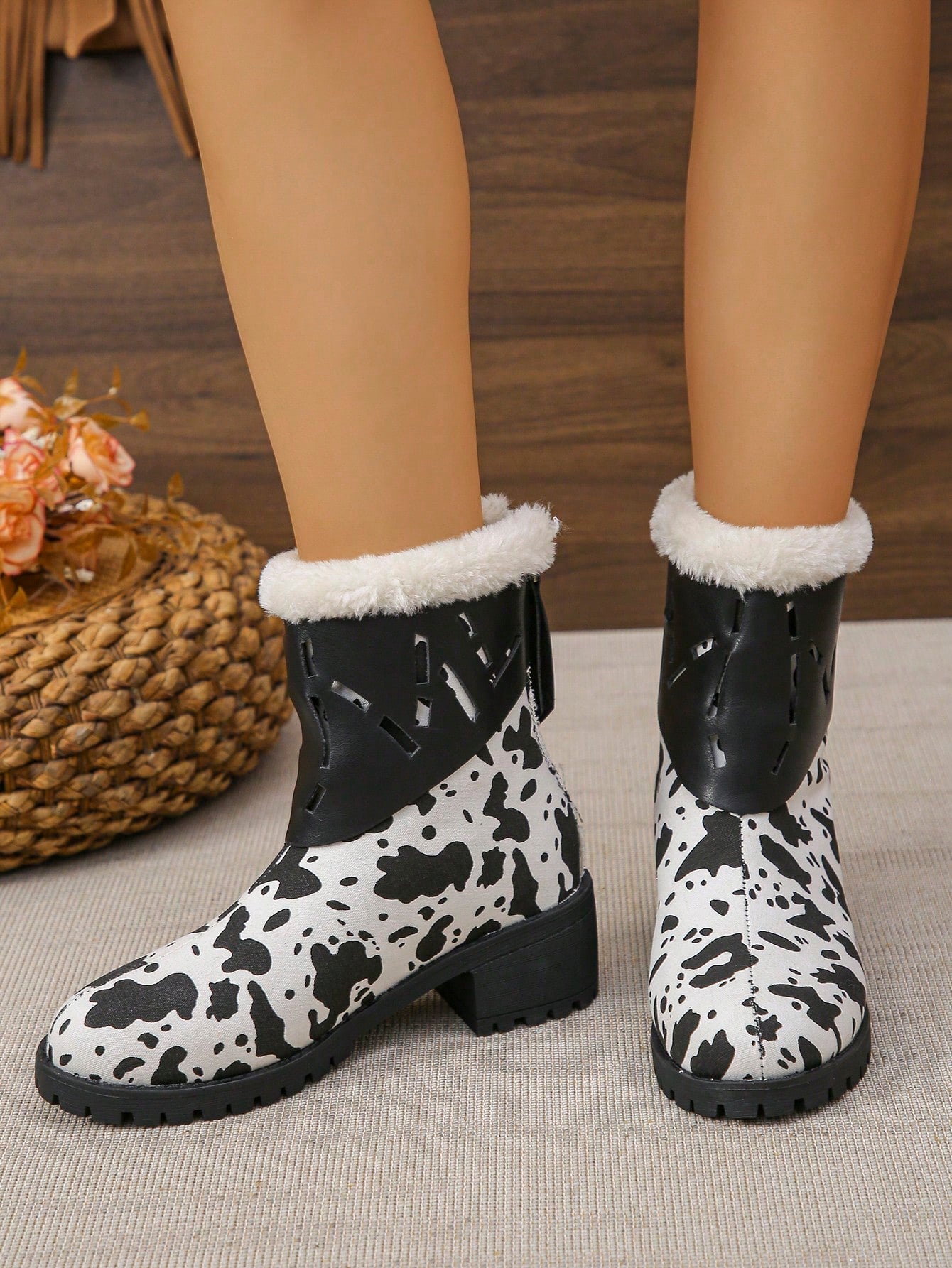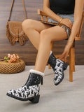 Trendy Cow Print Tall Boots with Zipper - Warm Thermal Lined Women's Footwear