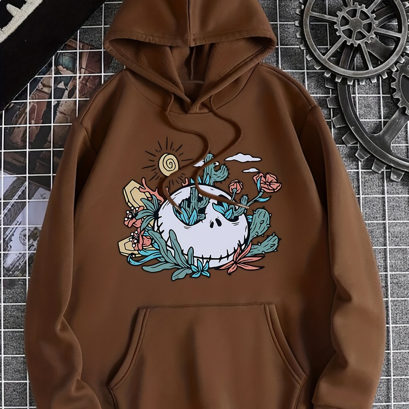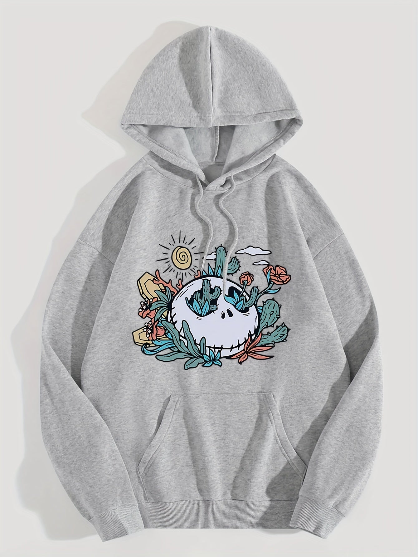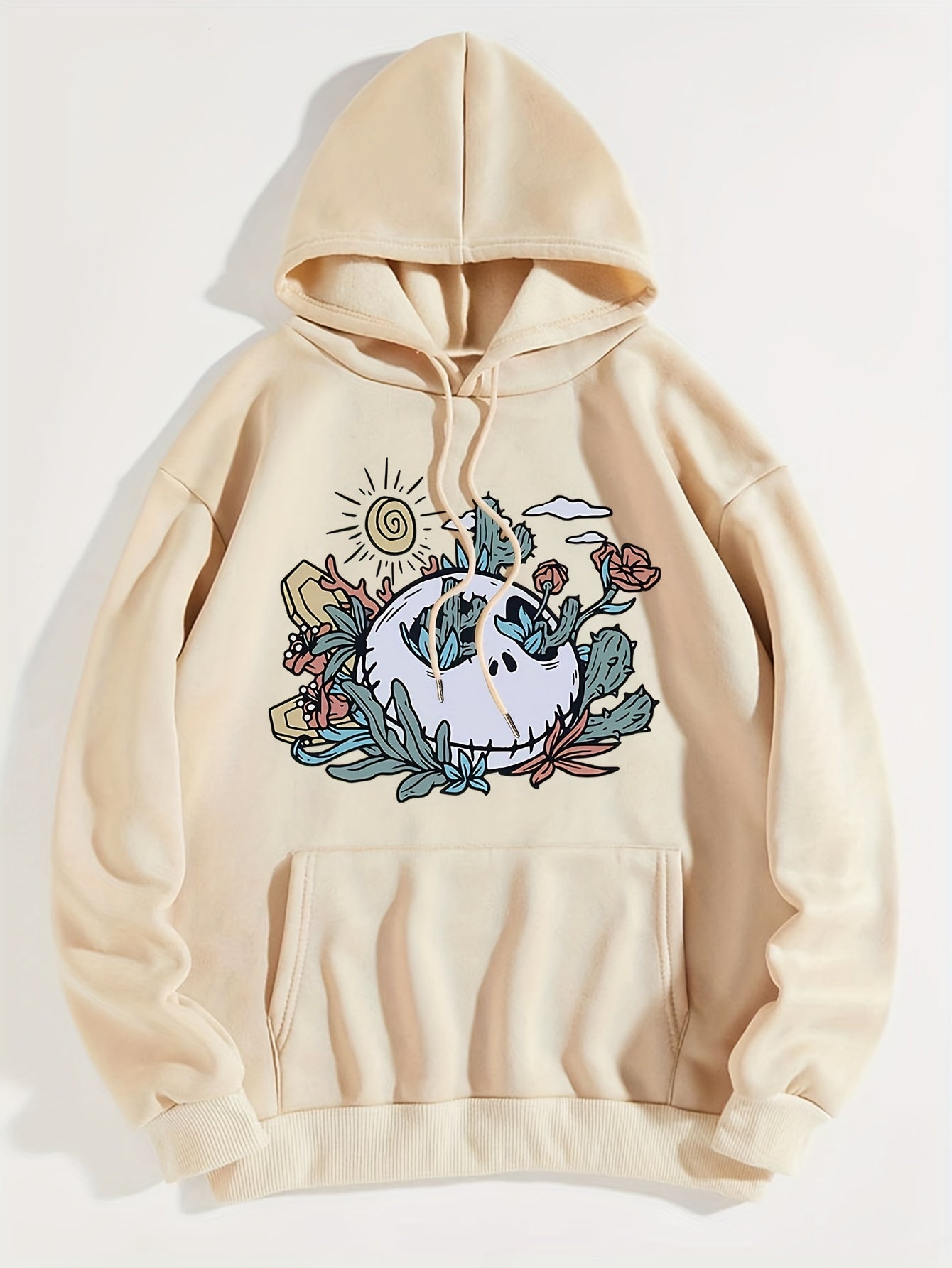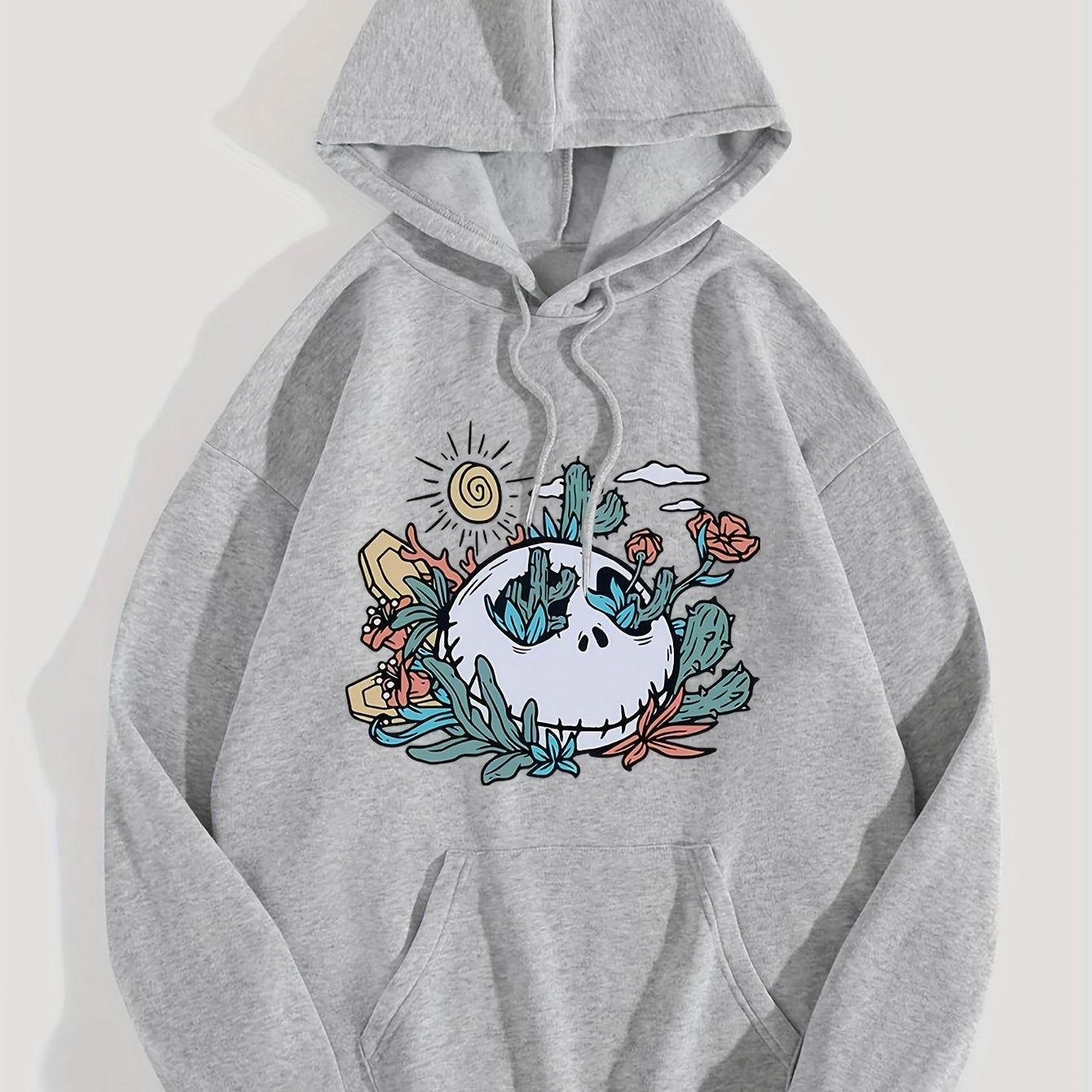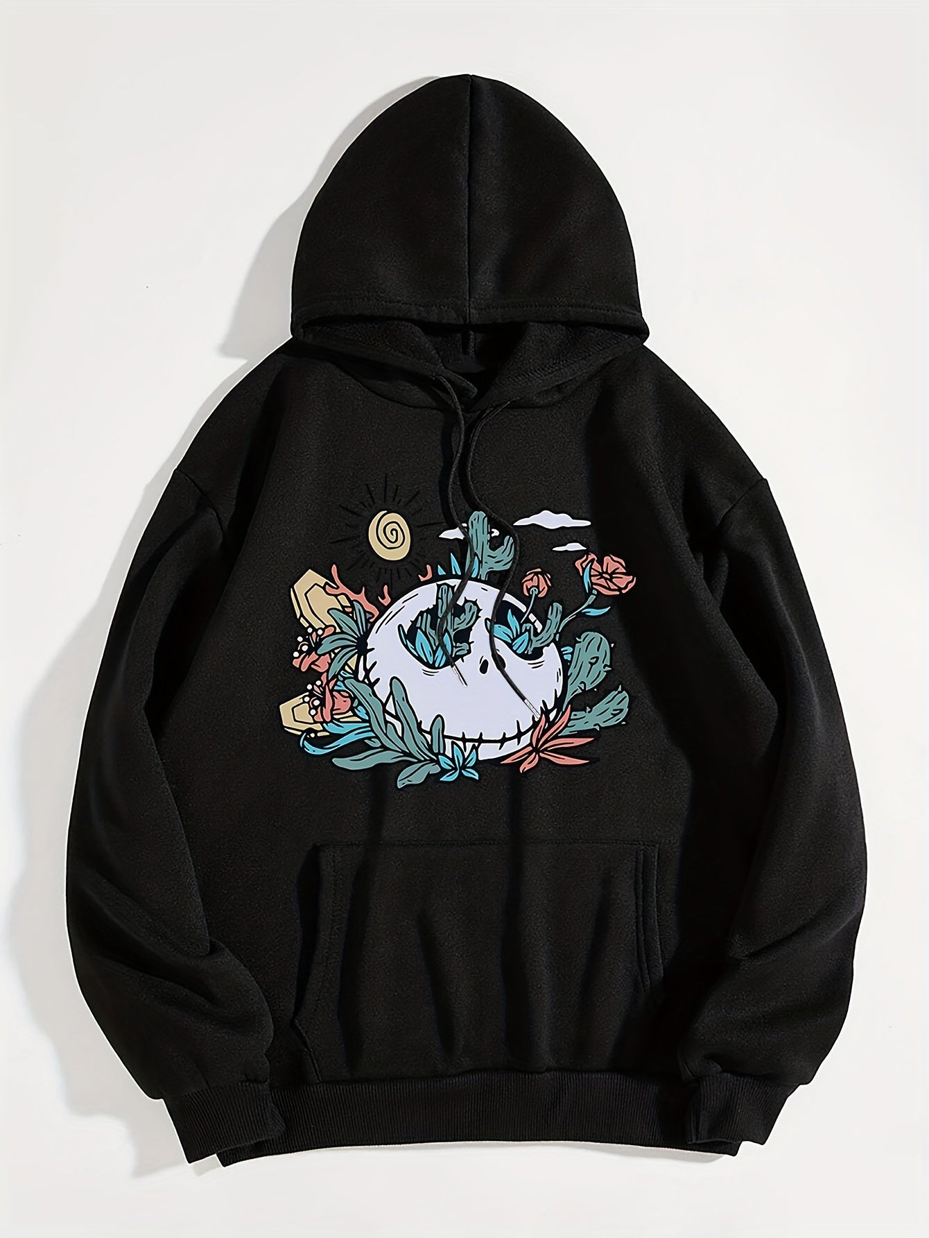 Trendy Floral Skull Print Hoodie: Embrace Winter with Style - Casual Hooded Sweatshirt for Women's Fashion