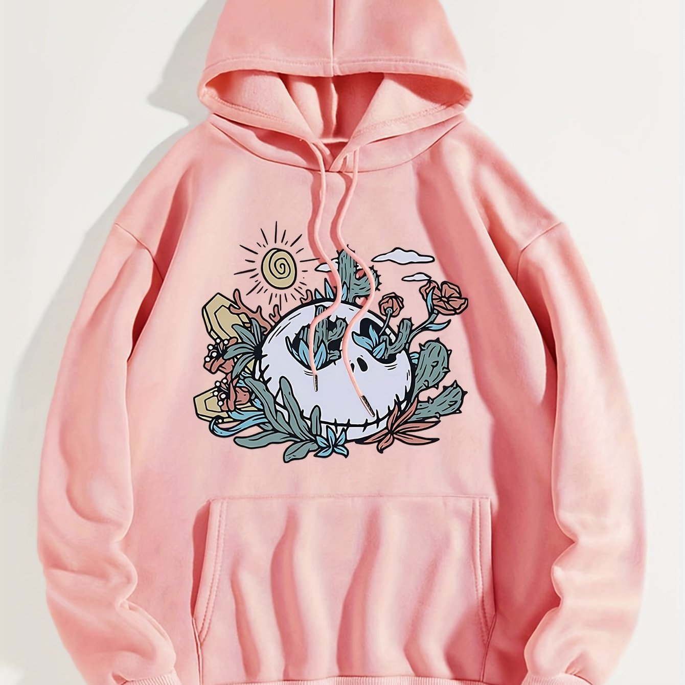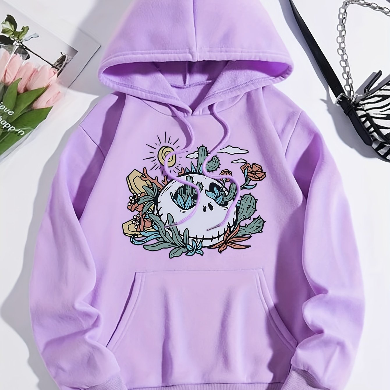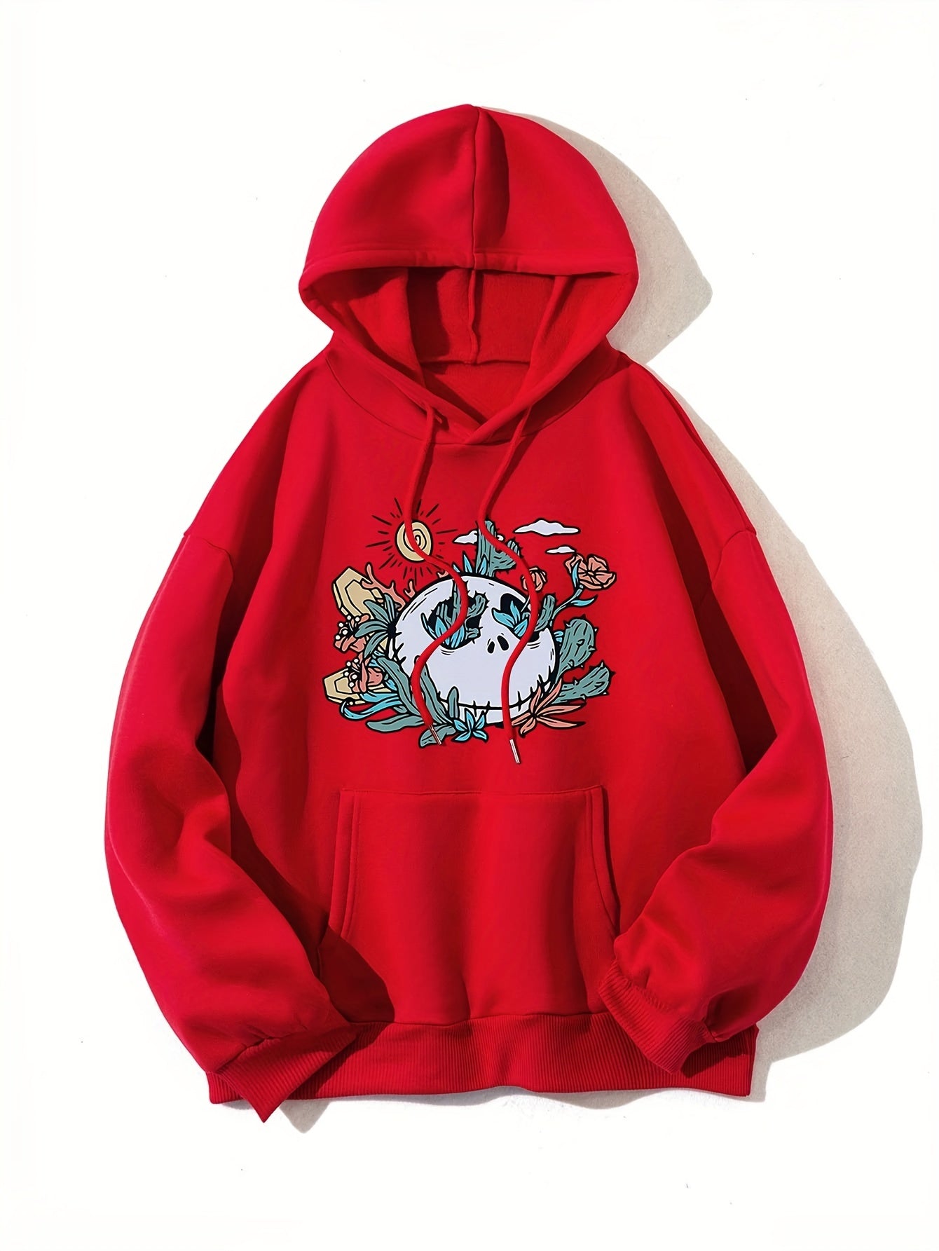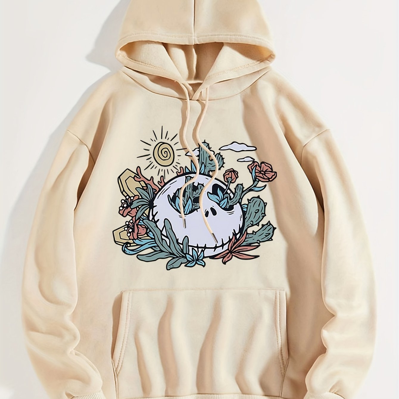 Trendy Floral Skull Print Hoodie: Embrace Winter with Style - Casual Hooded Sweatshirt for Women's Fashion