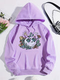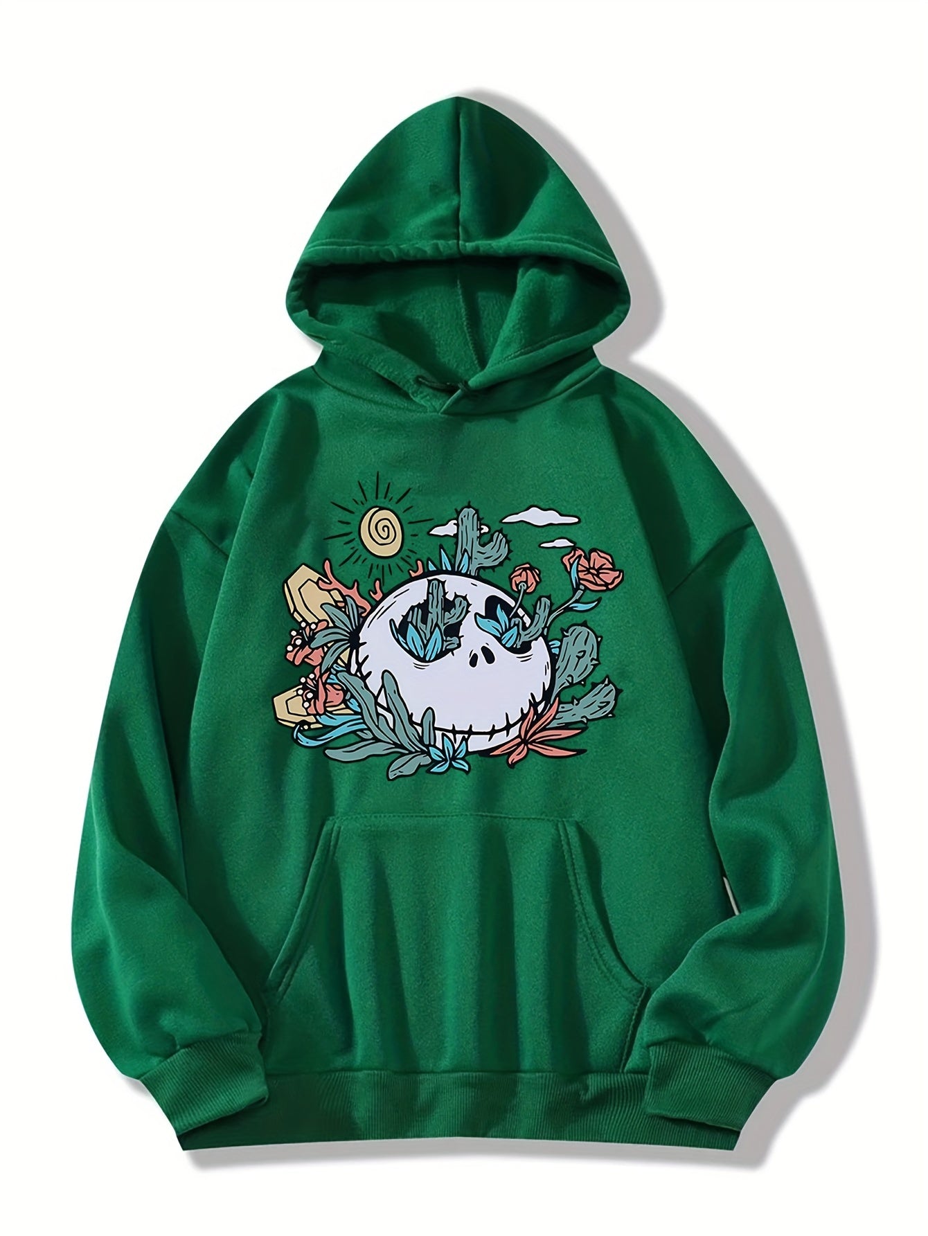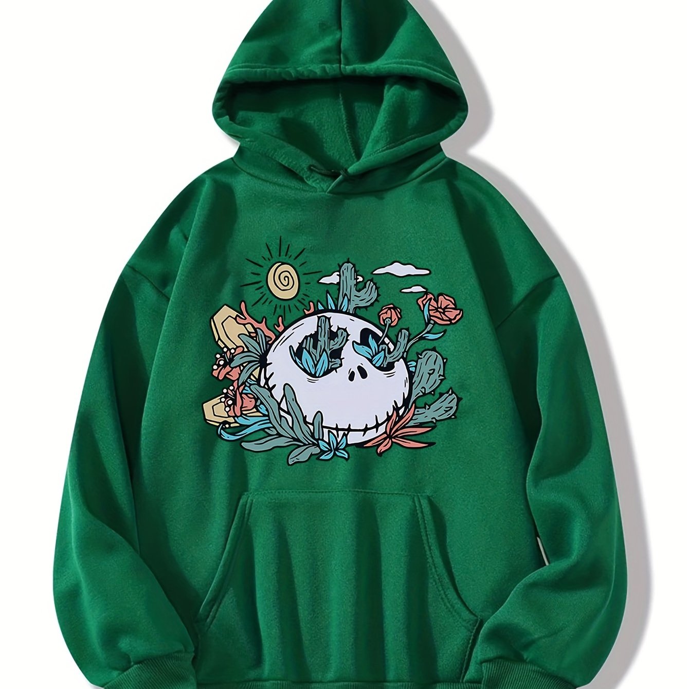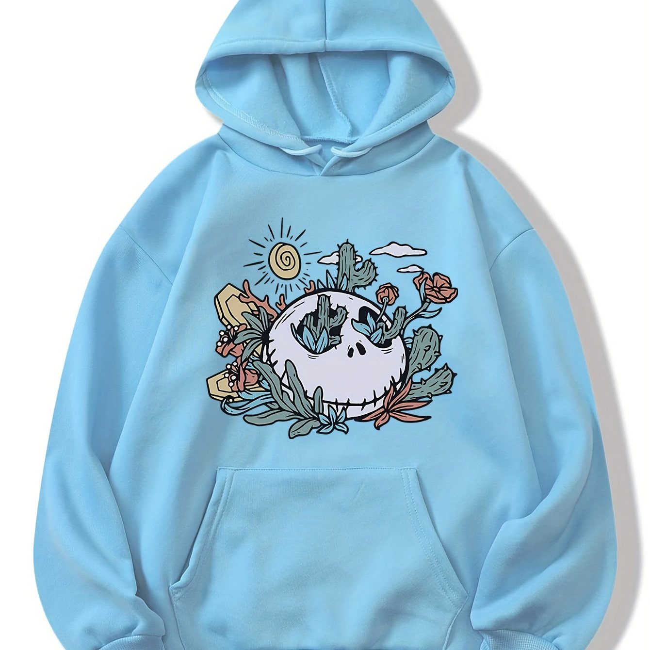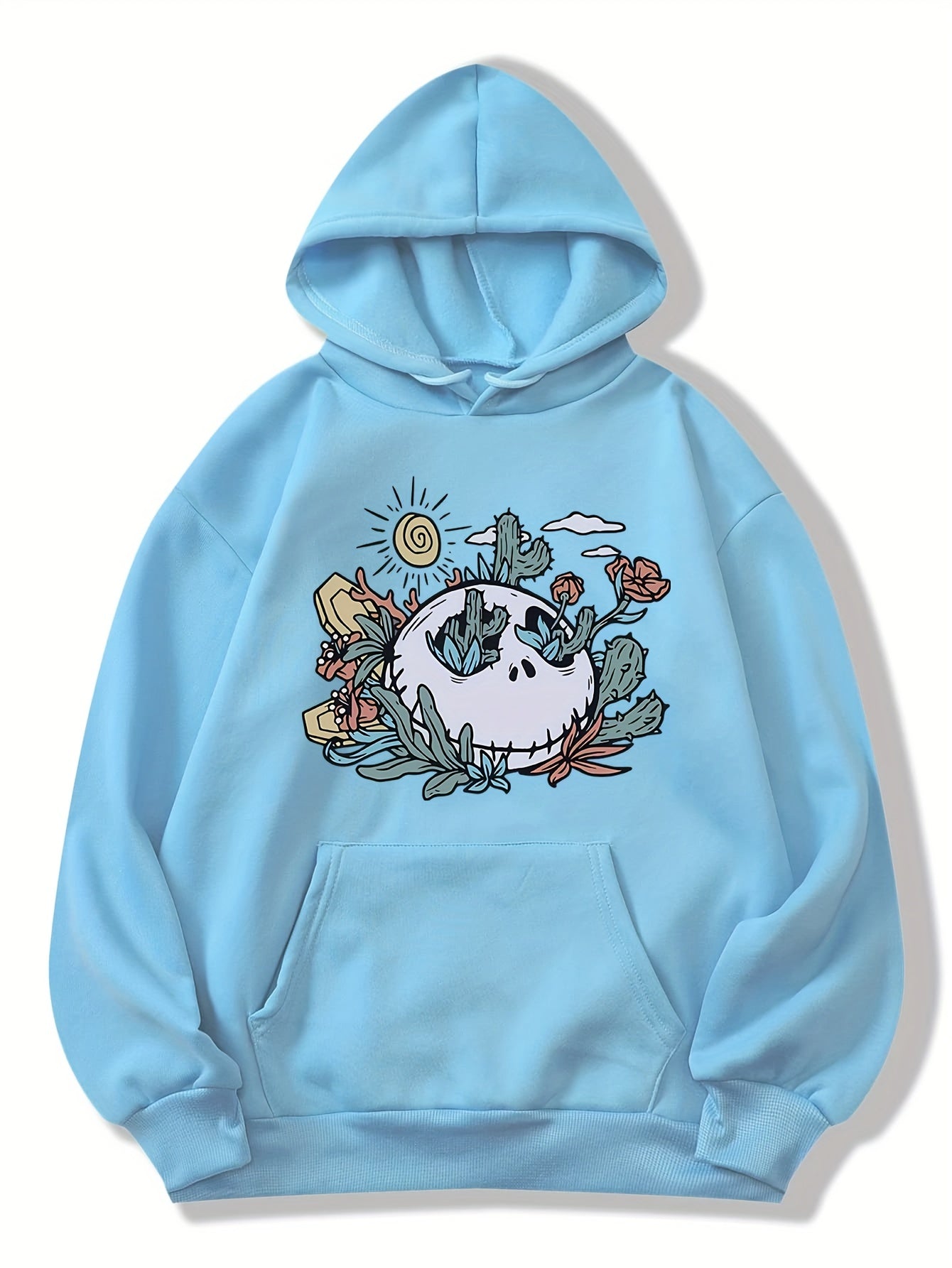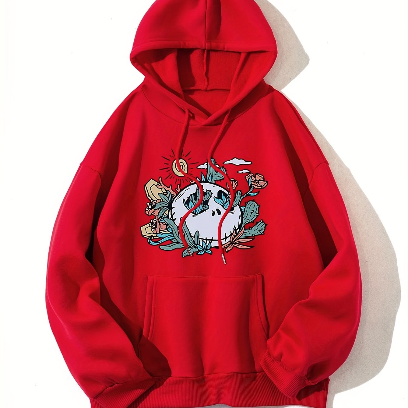Trendy Floral Skull Print Hoodie: Embrace Winter with Style - Casual Hooded Sweatshirt for Women's Fashion