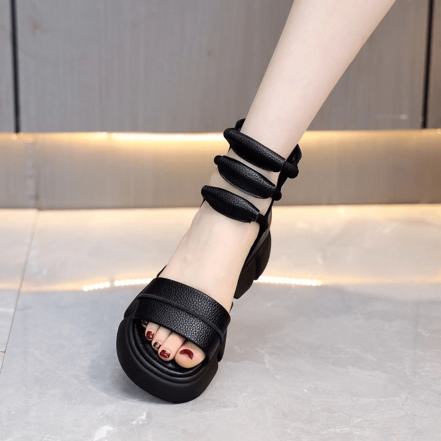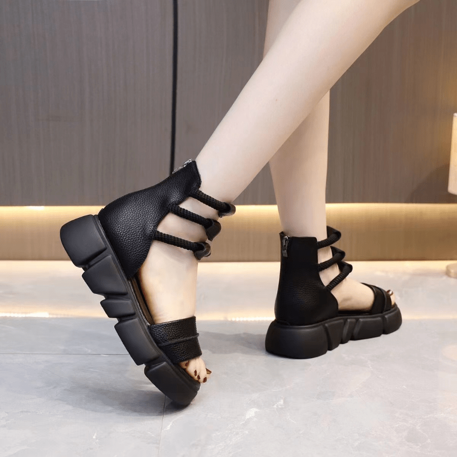 Trendy Summer Black Sandals: Roman Style Fish Mouth Design