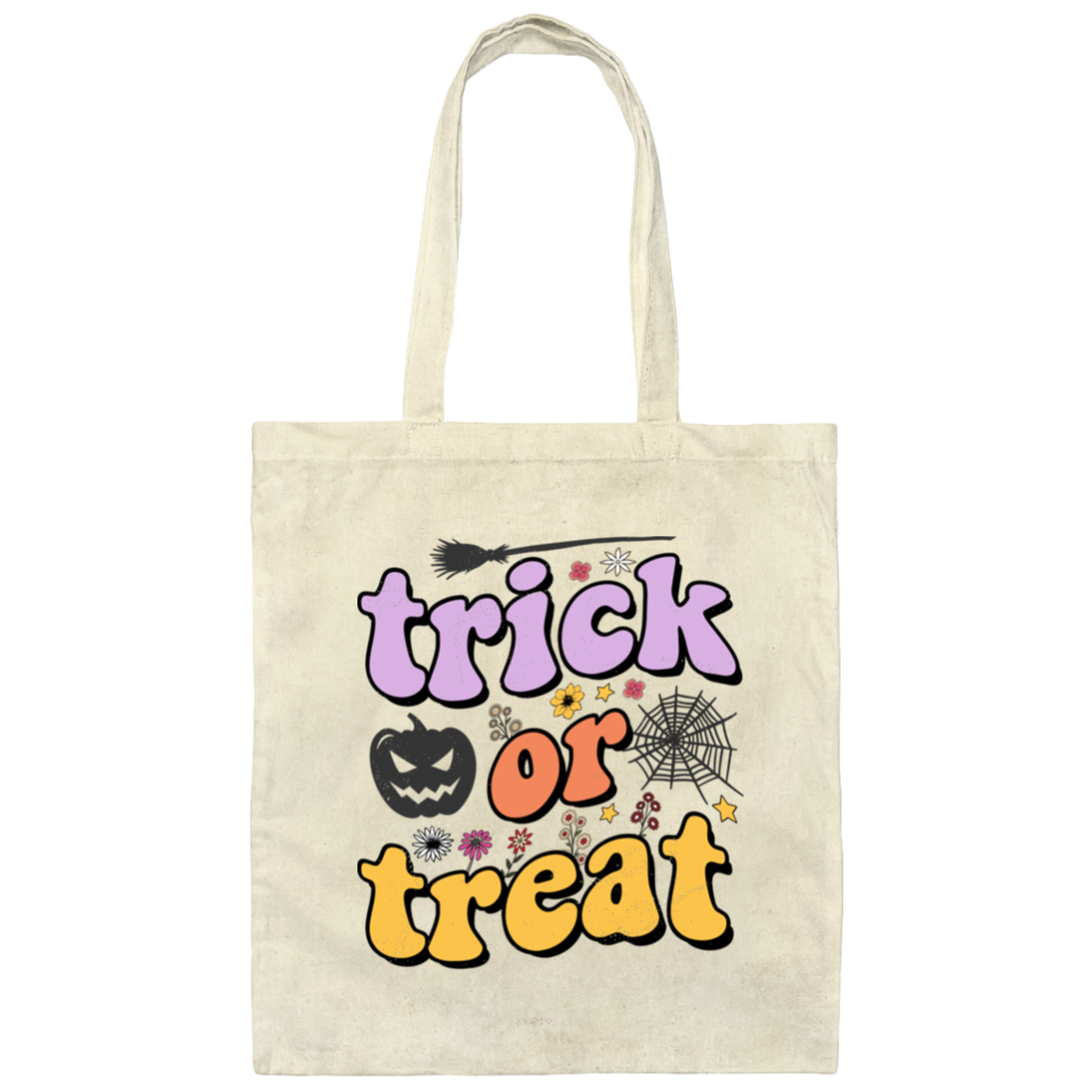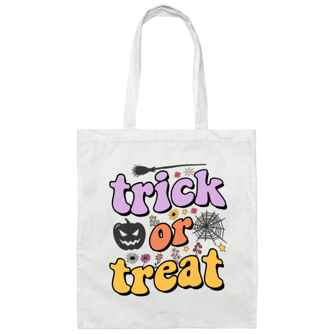 Trick Or Treat, Halloween, Witch And Broom Canvas Tote Bag