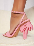 Tropical Chic Faux Leather Palm Tree Heeled Sandals