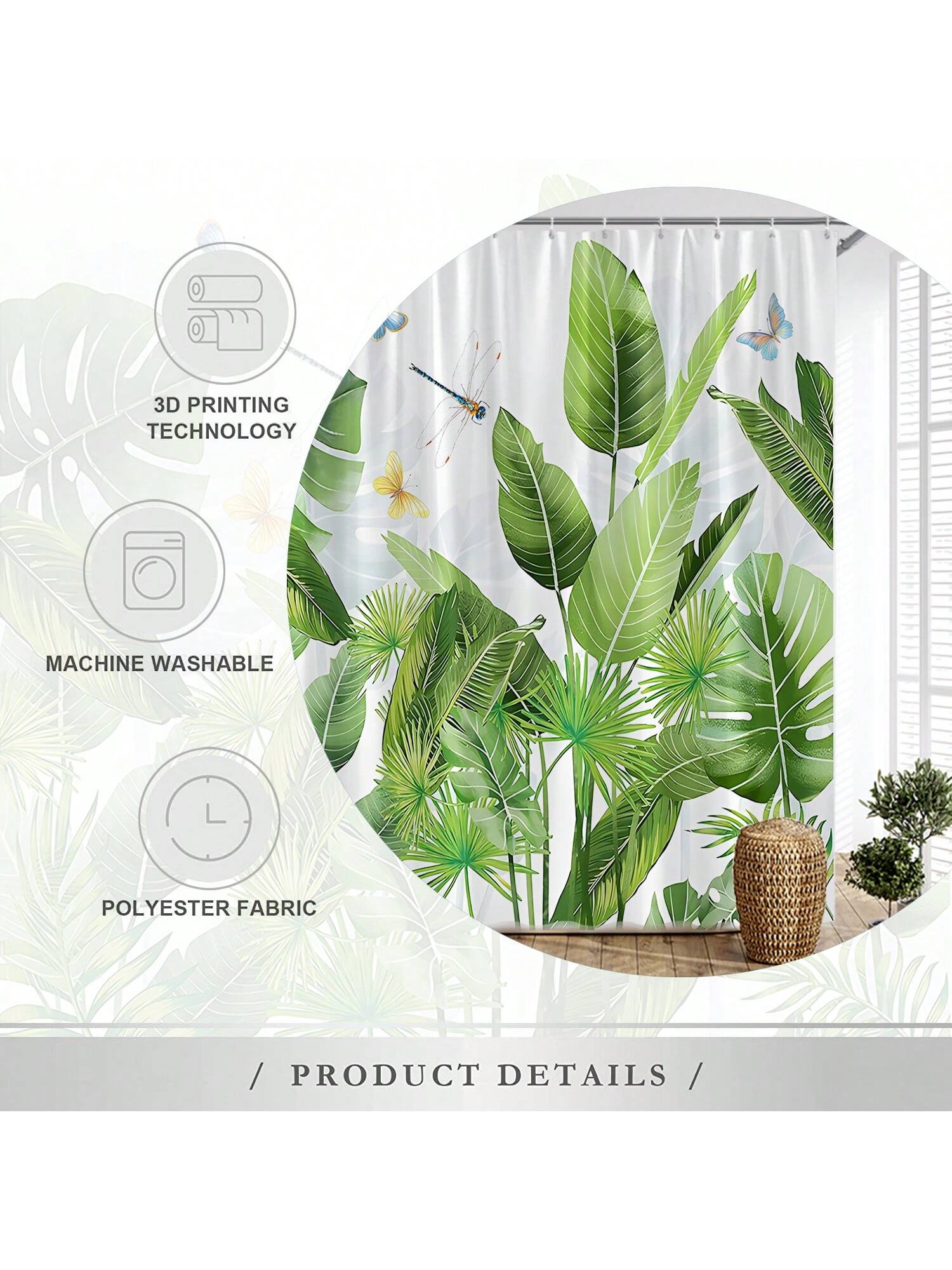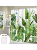 Tropical Oasis: Turtle & Leaf Print Shower Curtain with Dragonfly & Butterfly Accents
