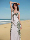 Tropical Paradise: Beach Vacation Dress with Bowknot Shoulder Straps
