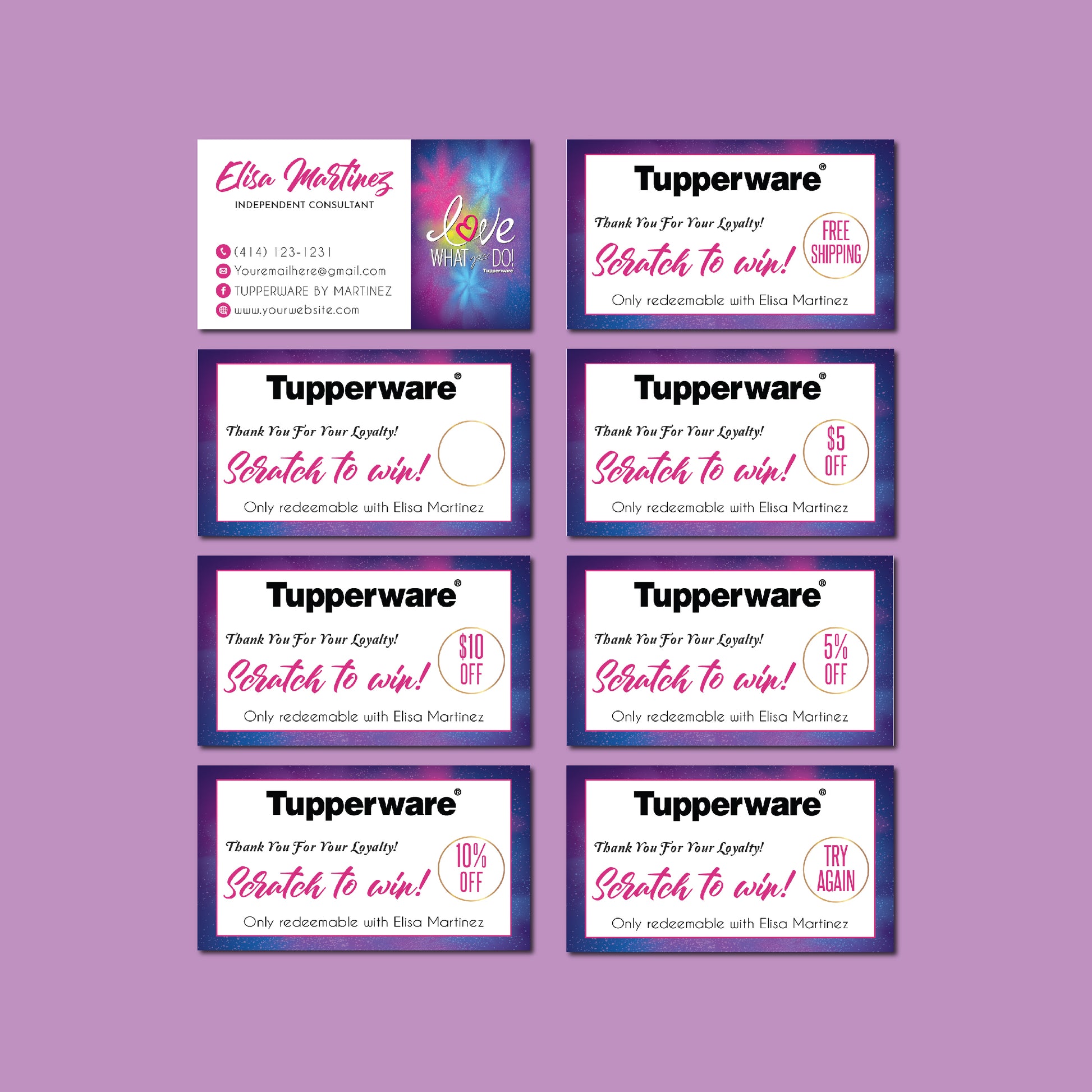 Tupperware Marketing Bundle, Personalized Tupperware Full Kit Business Cards TW04.