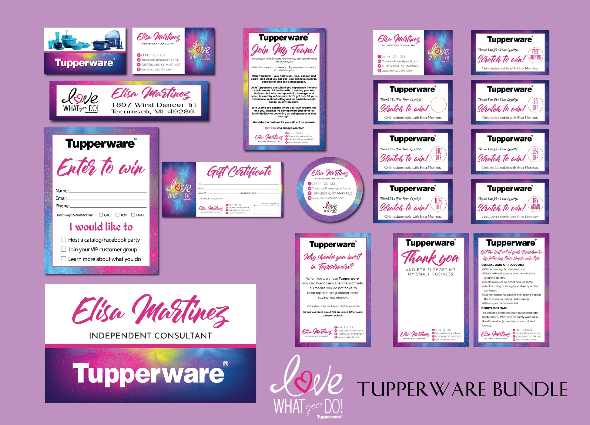Tupperware Marketing Bundle, Personalized Tupperware Full Kit Business Cards TW04