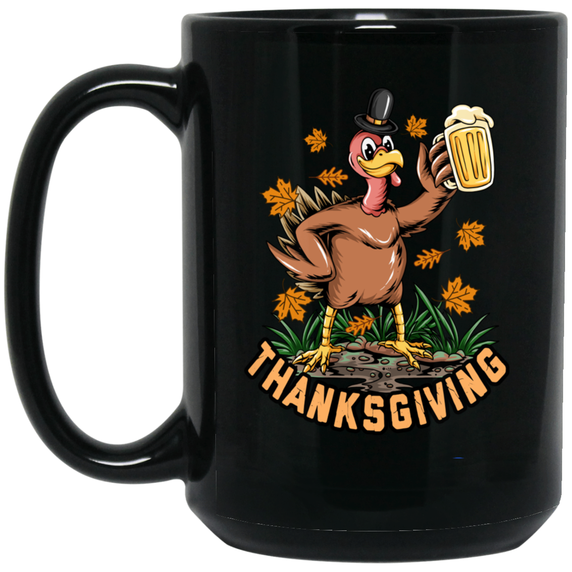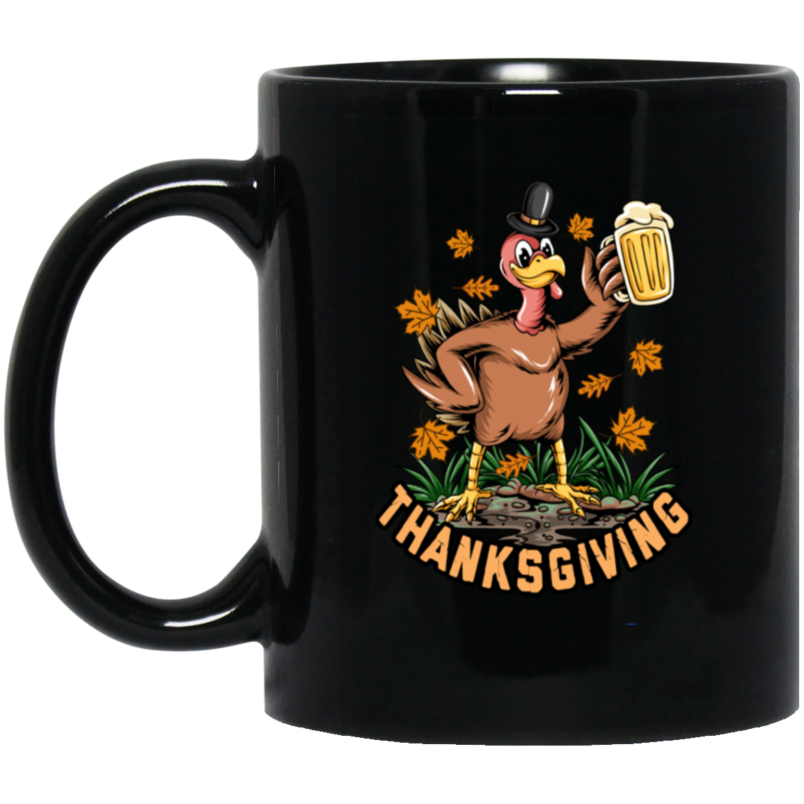 Turkey With Beer, Thanksgiving's Day, Thankful With Beer Black Mug