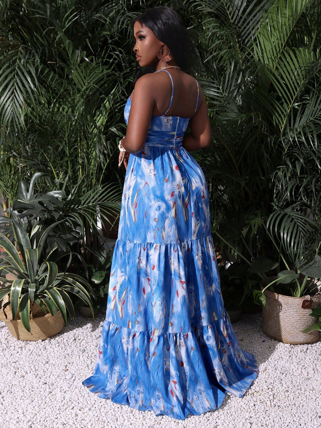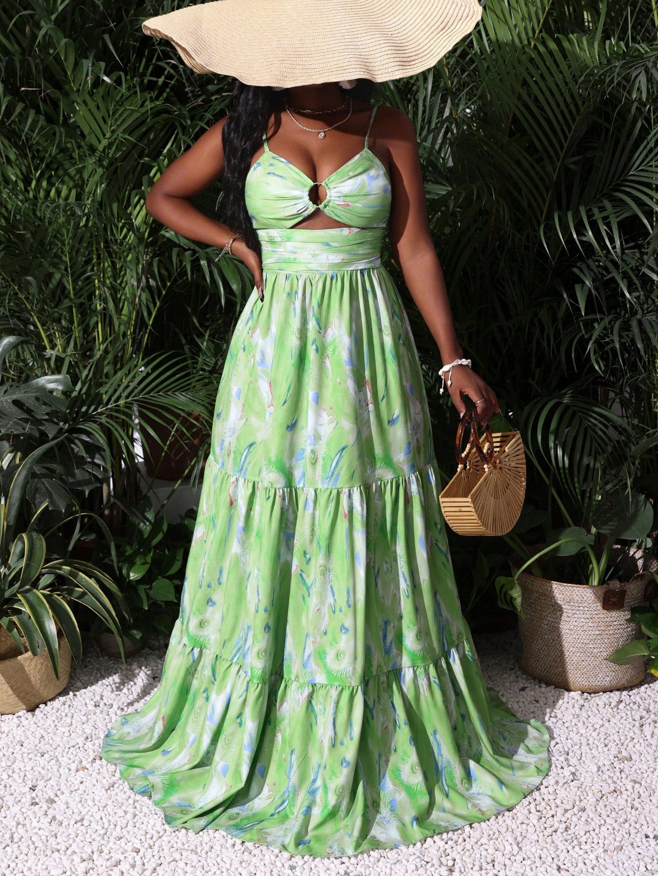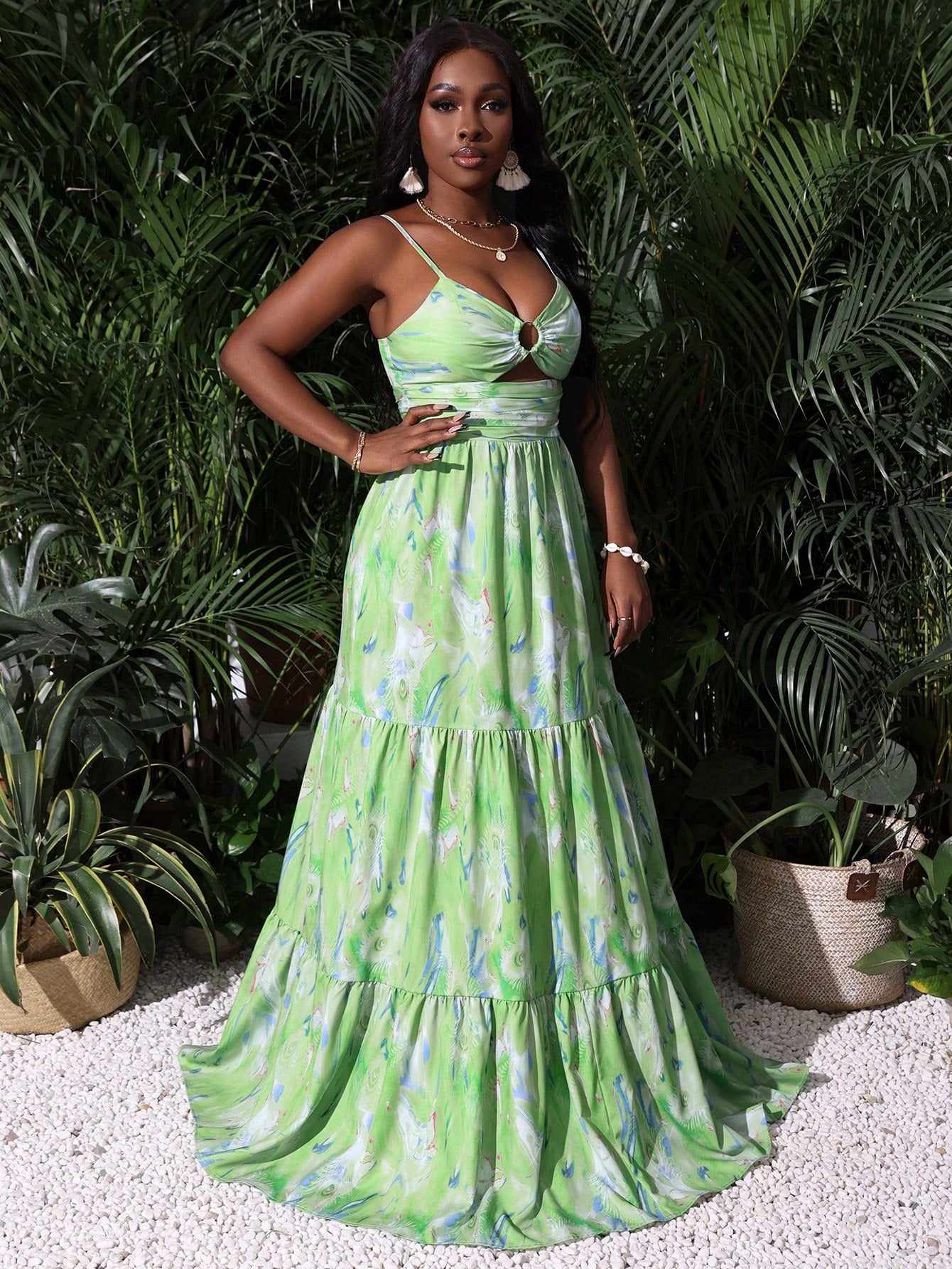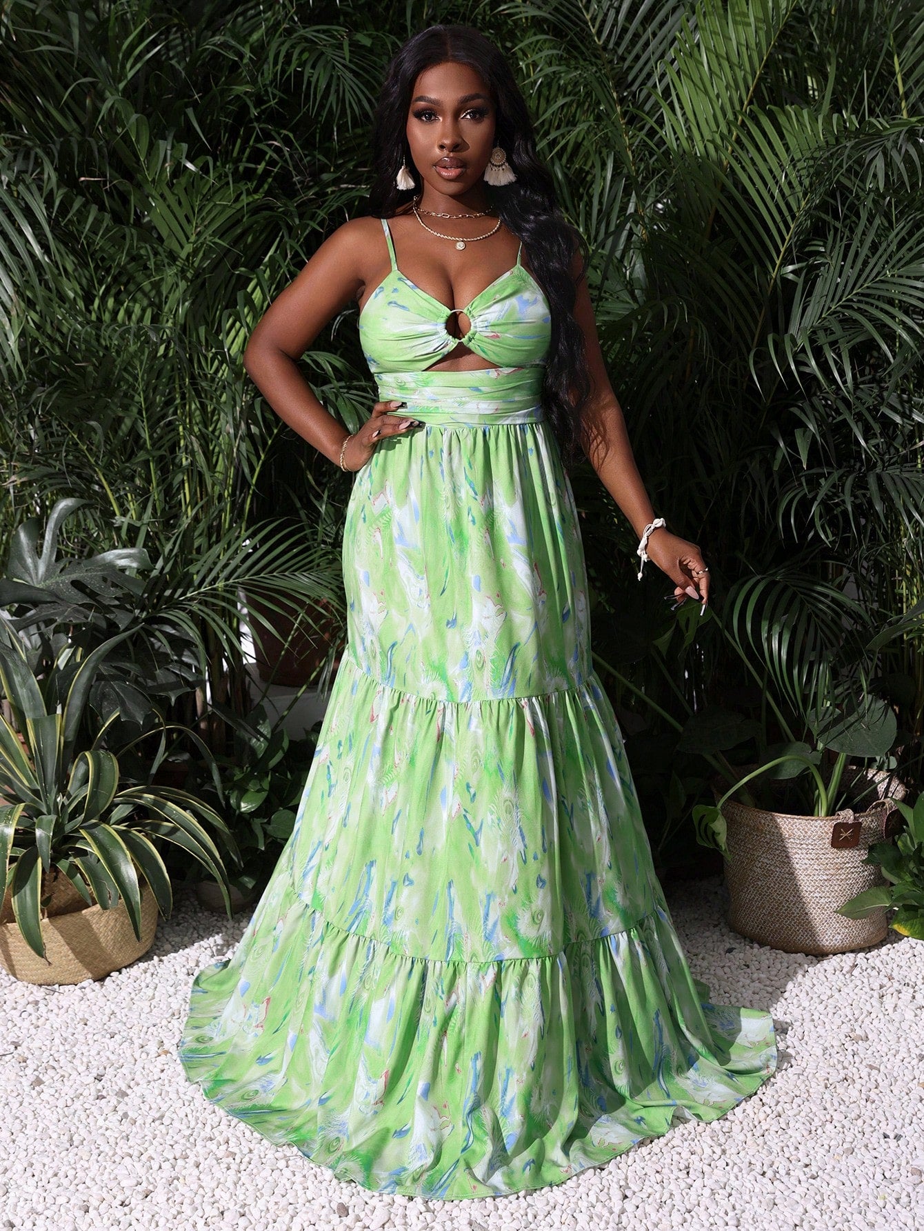 Ultimate Holiday Slay: Printed Strappy Dress for Women