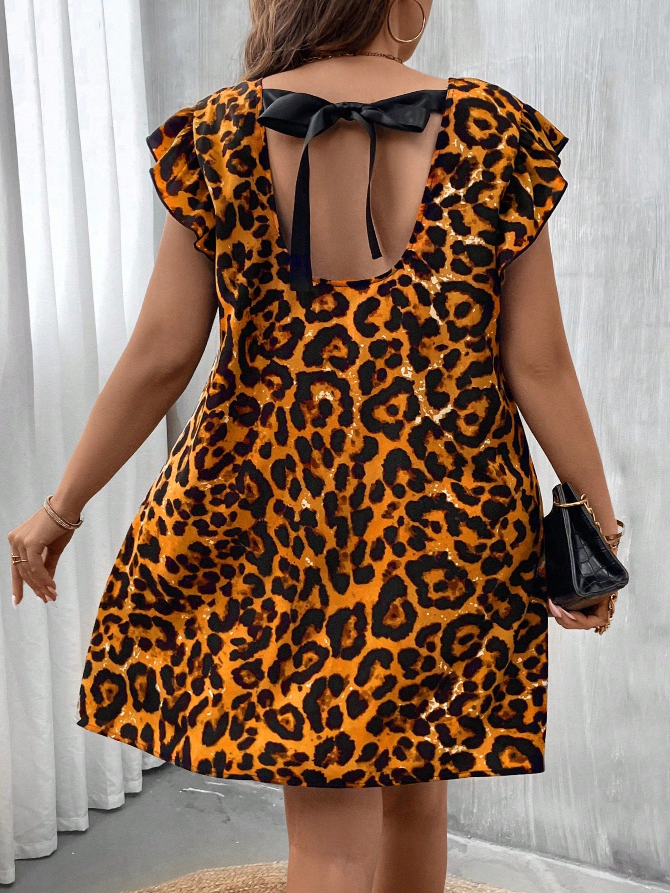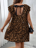 Unleash Your Wild Side: Plus Size Backless Leopard Print Swing Dress with Flare Sleeves