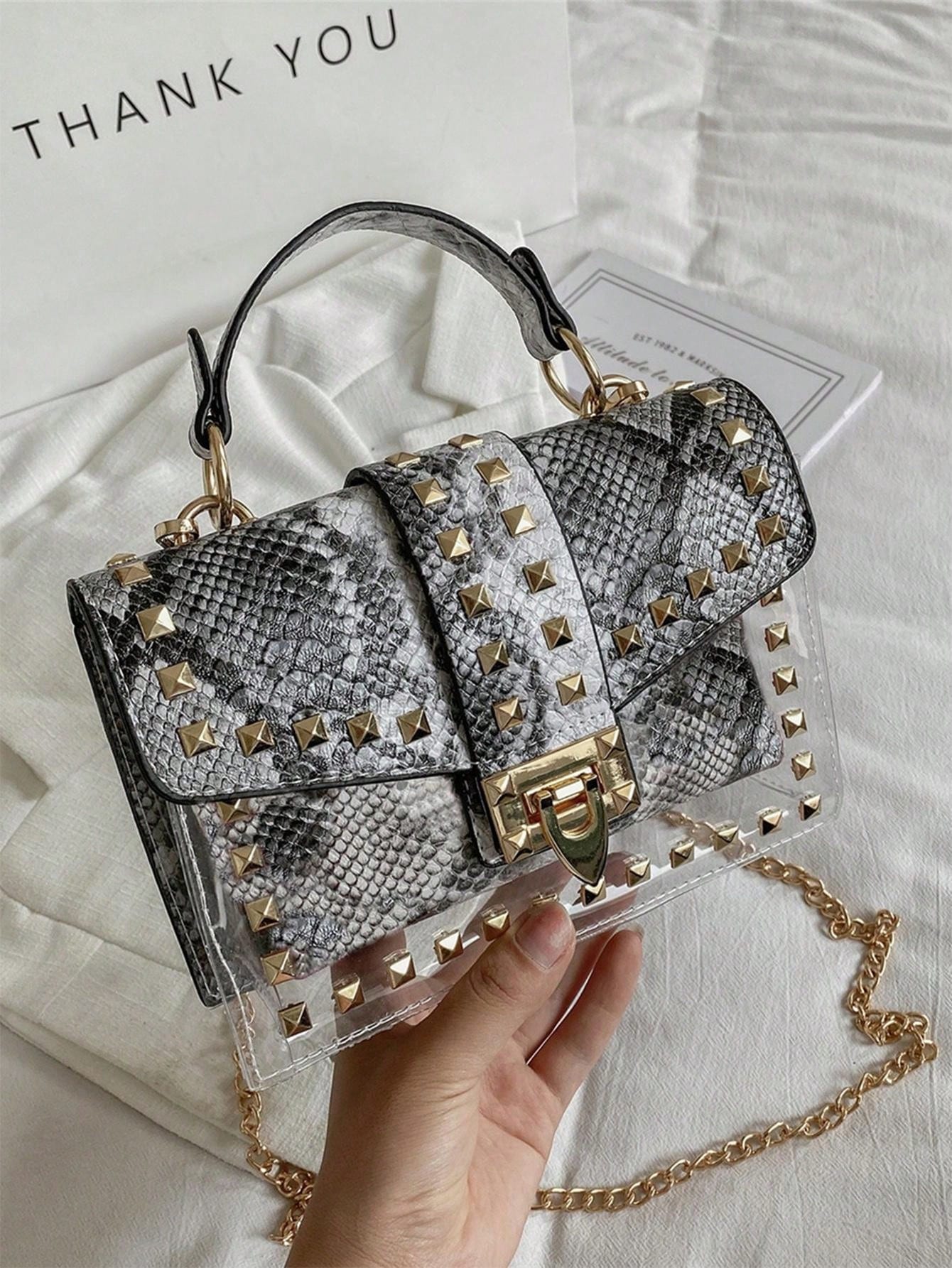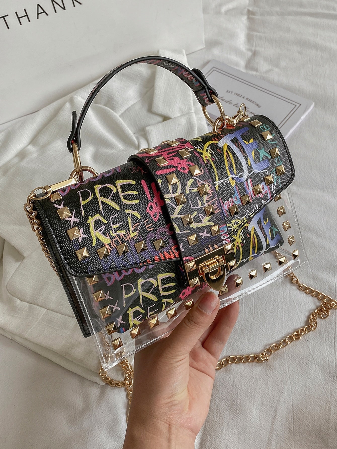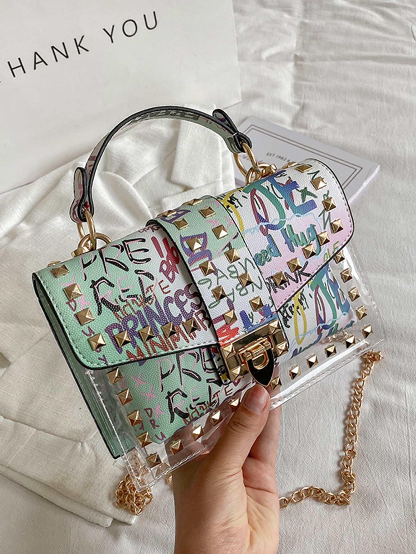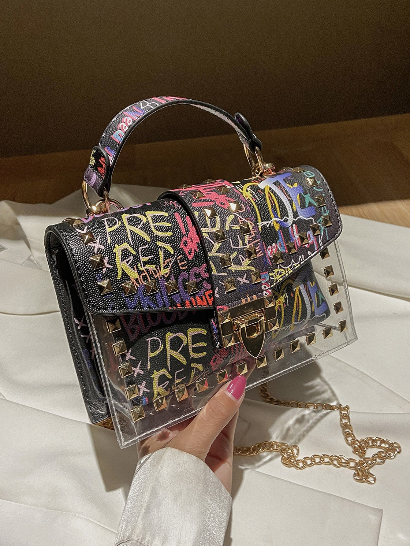 Urban Vibe Tote: Graffiti and Rivet-Embellished Statement Bag